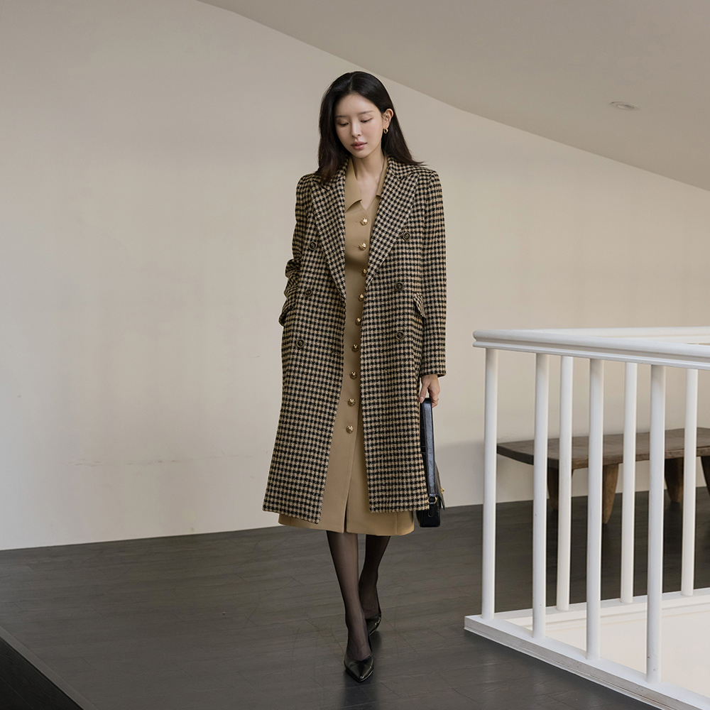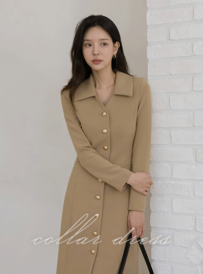 カラー 切開ネック ゴールド ボタン Hライン ワンピース