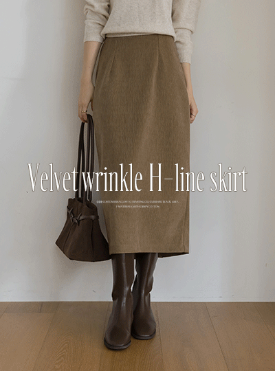 細かく美しい ベルベット リンクル Hライン 後面バンド スカート