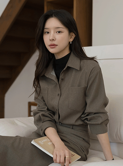 ウール ツーポケット ルーズフィット シャツ