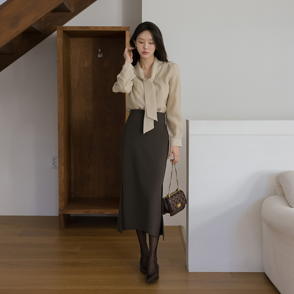 サテン スカーフネック ブラウス