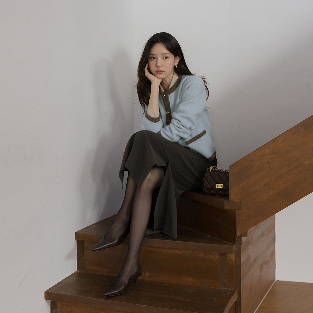 ボートネック バック切開 ウール ニット ロング ワンピース