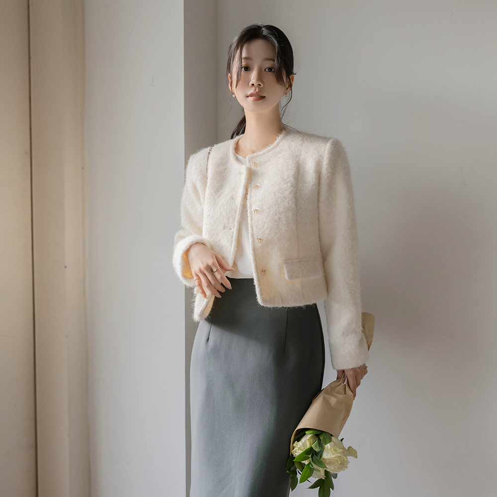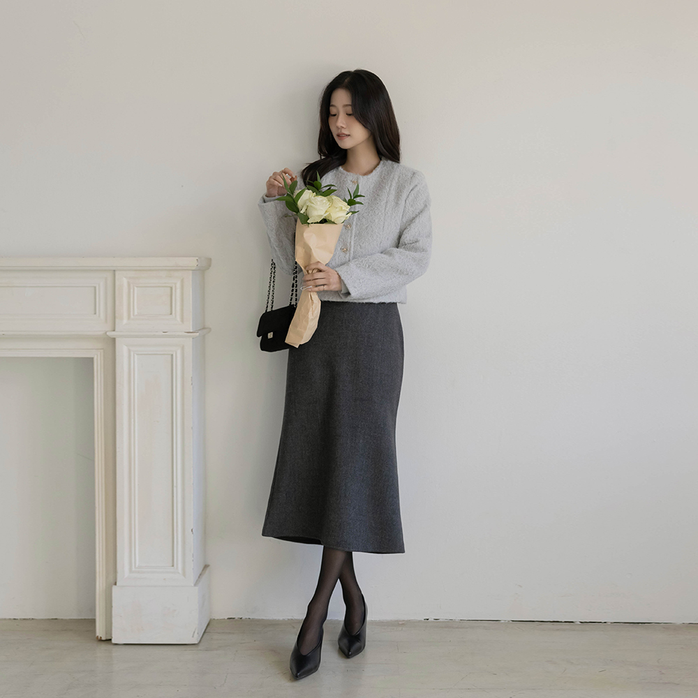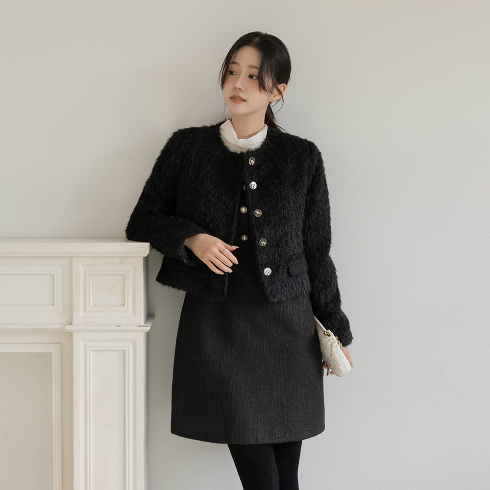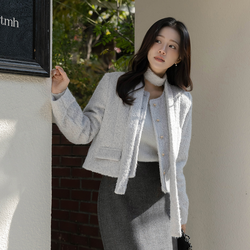 スカーフネック レイヤード 配色 ツイード ワンピース