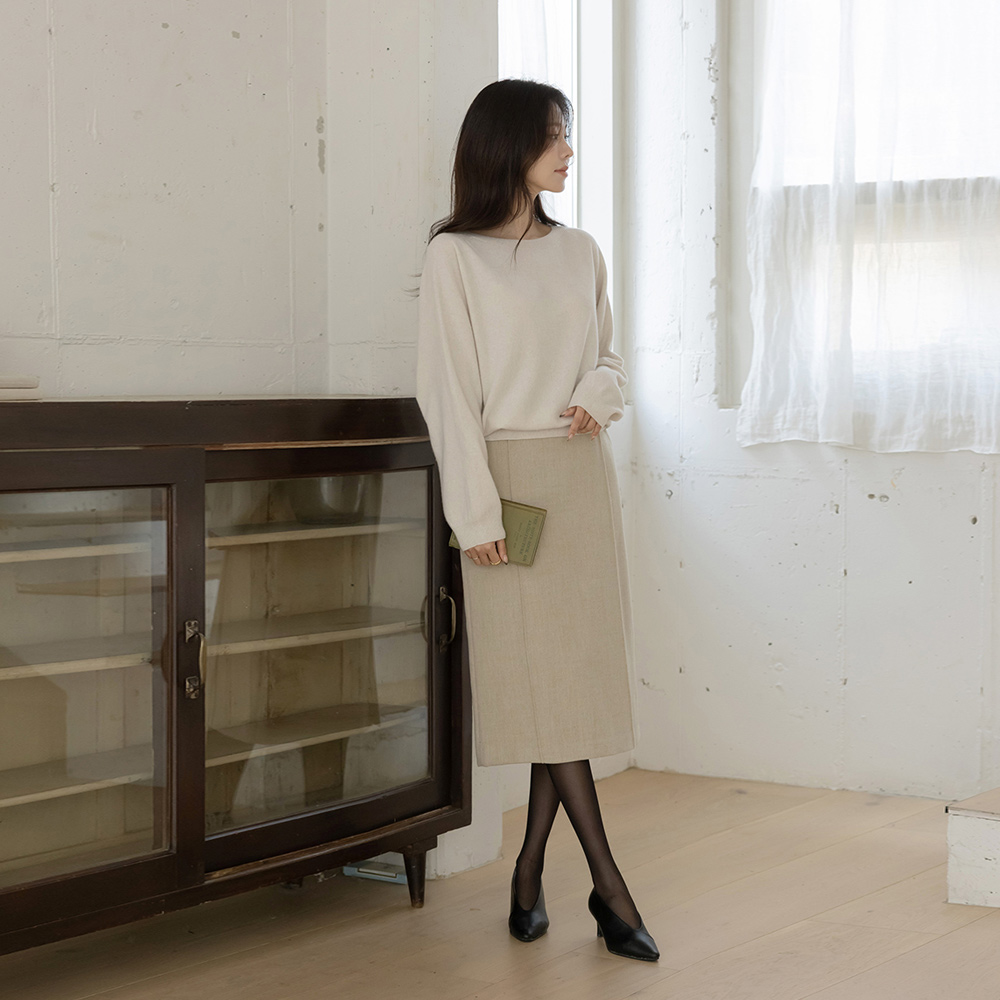 唇ネックライン Whole Garment カシミア&ウール ニット