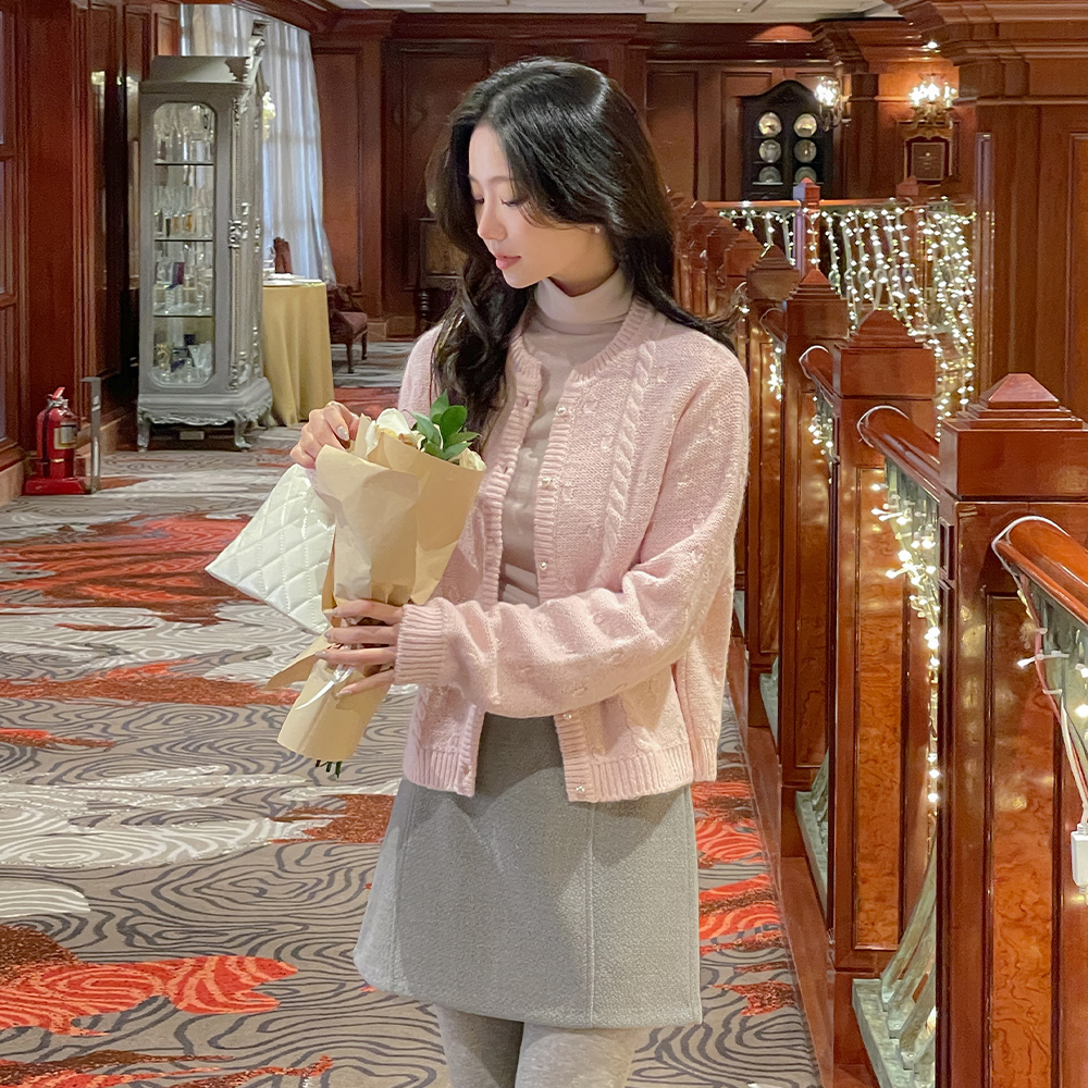 細かく美しい 起毛 シャーリング とっくりえり ティーシャツ