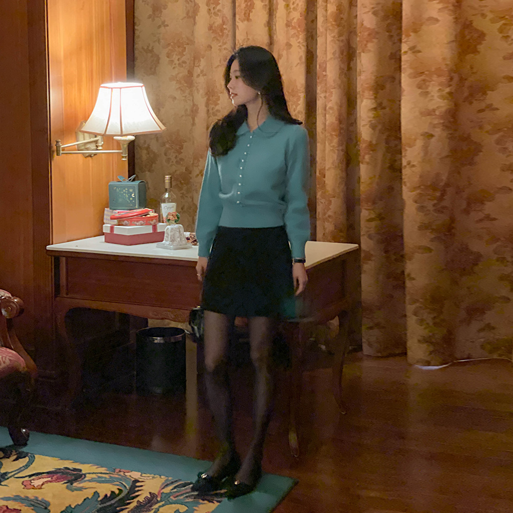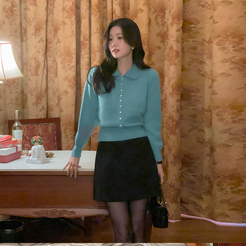 キャンデー アルパカ&ウール 真珠ボタン カーディガン