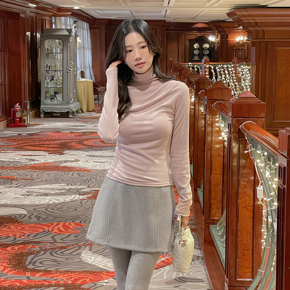 細かく美しい 起毛 シャーリング とっくりえり ティーシャツ