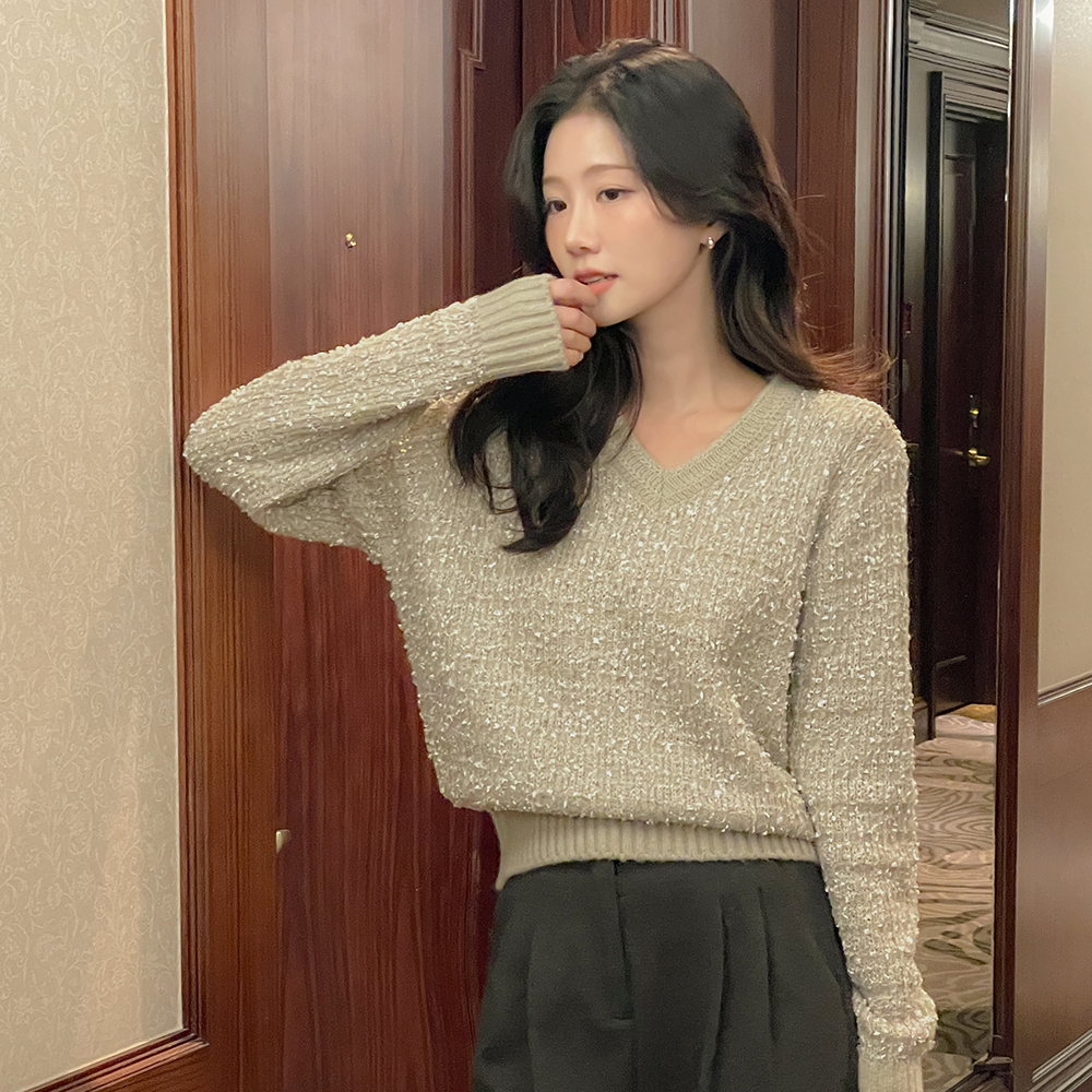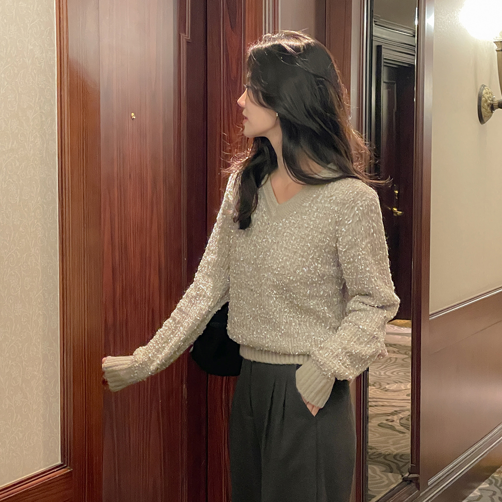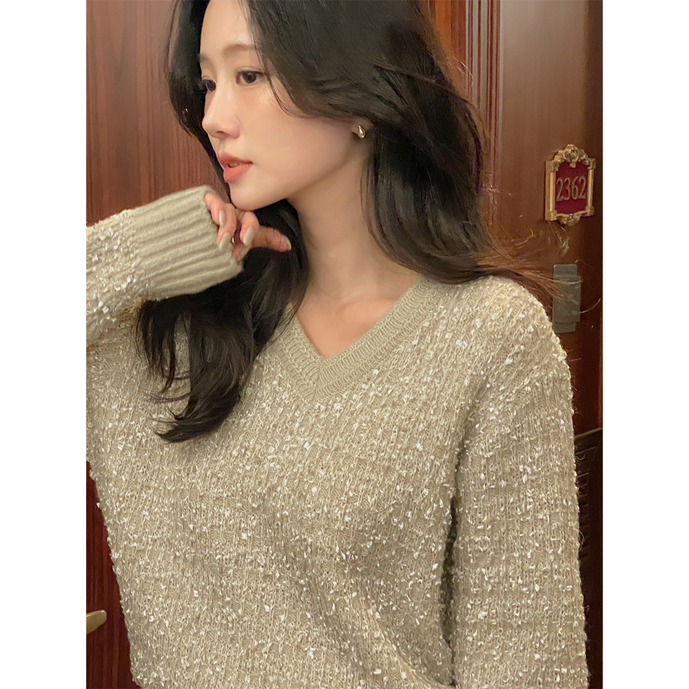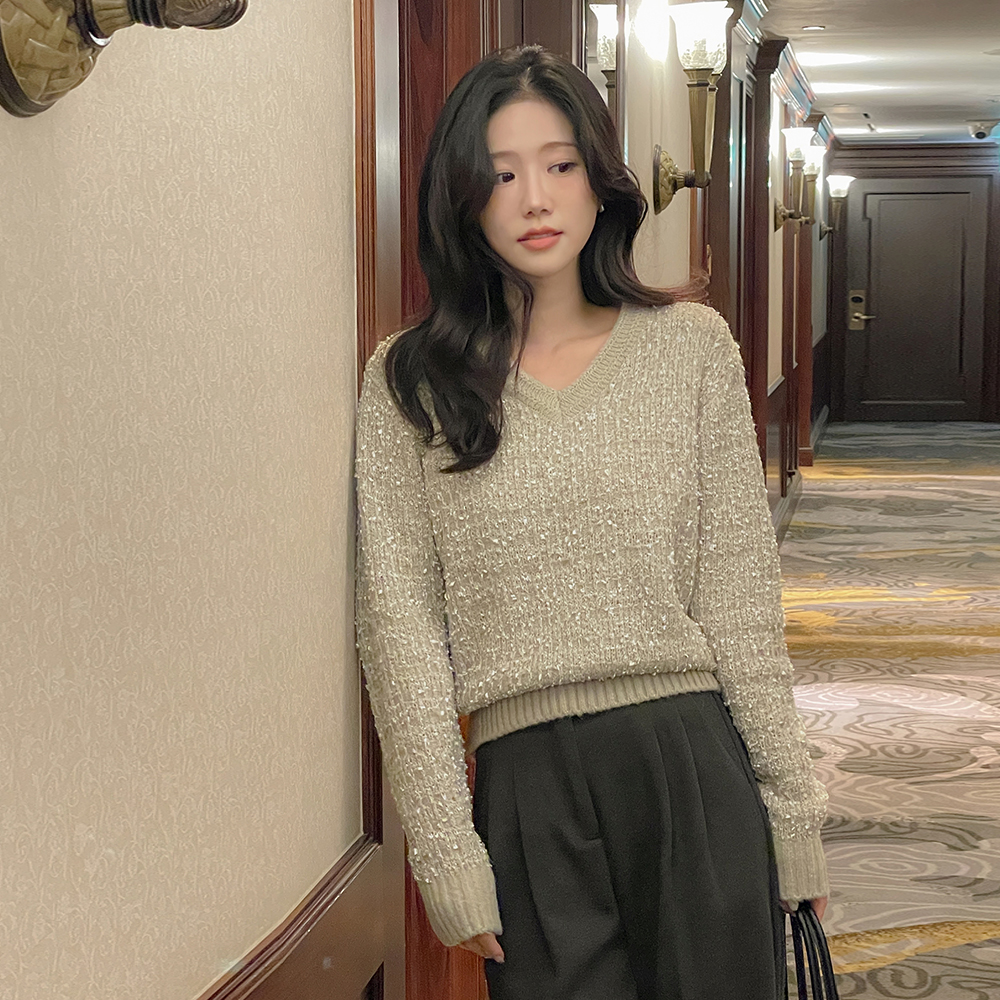 Vネック アルパカ&ウール タッセル 分厚い ニット
