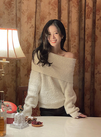 ほっそりした ブークレ ウール 分厚い オフショルダー ニット