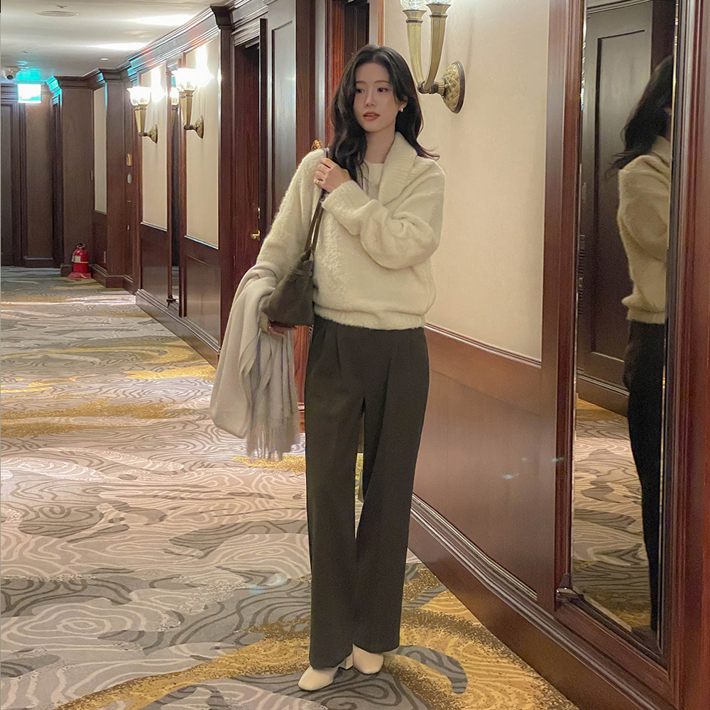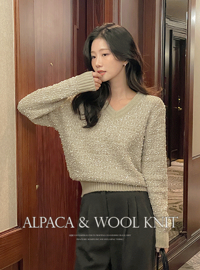 Vネック アルパカ&ウール タッセル 分厚い ニット