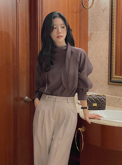 Merry タイネック テンセル 長袖 ブラウス