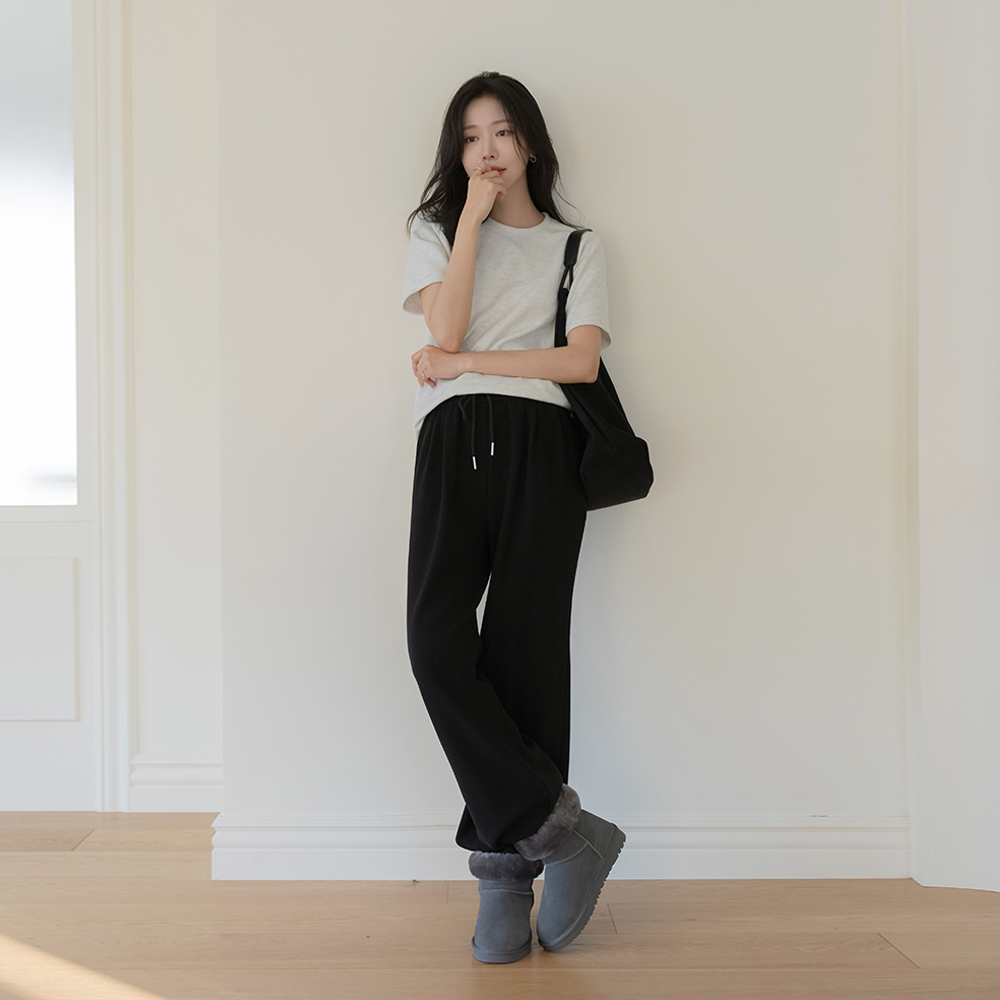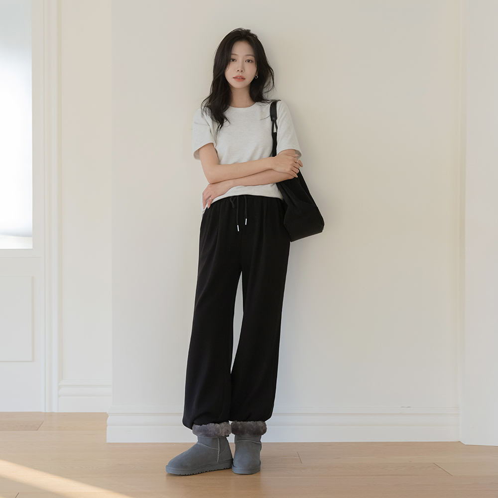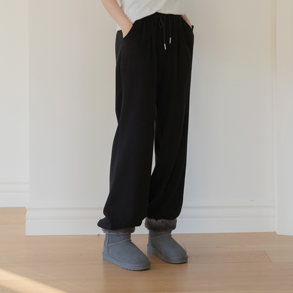 分厚い 起毛 ワイドフィット バンディング パンツ