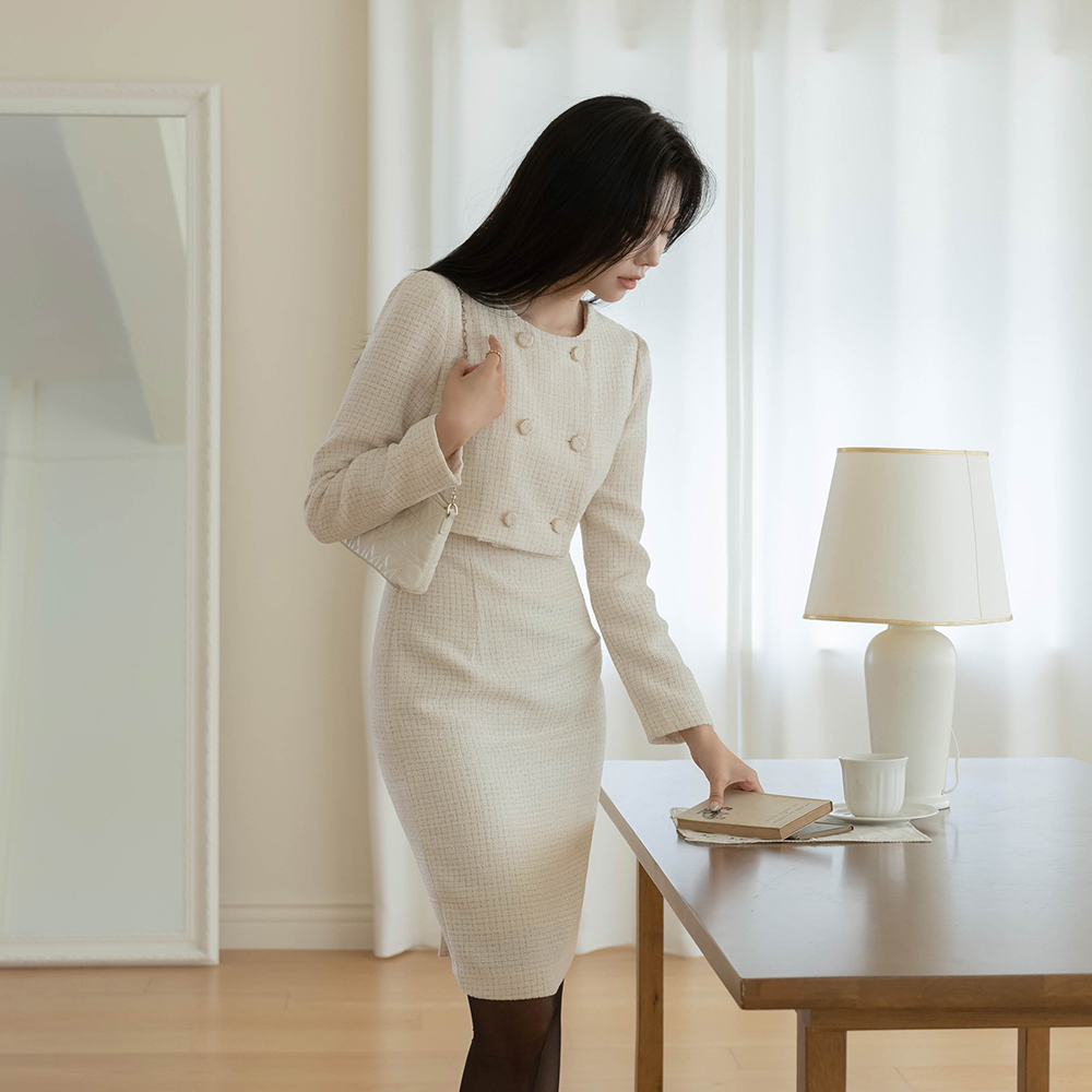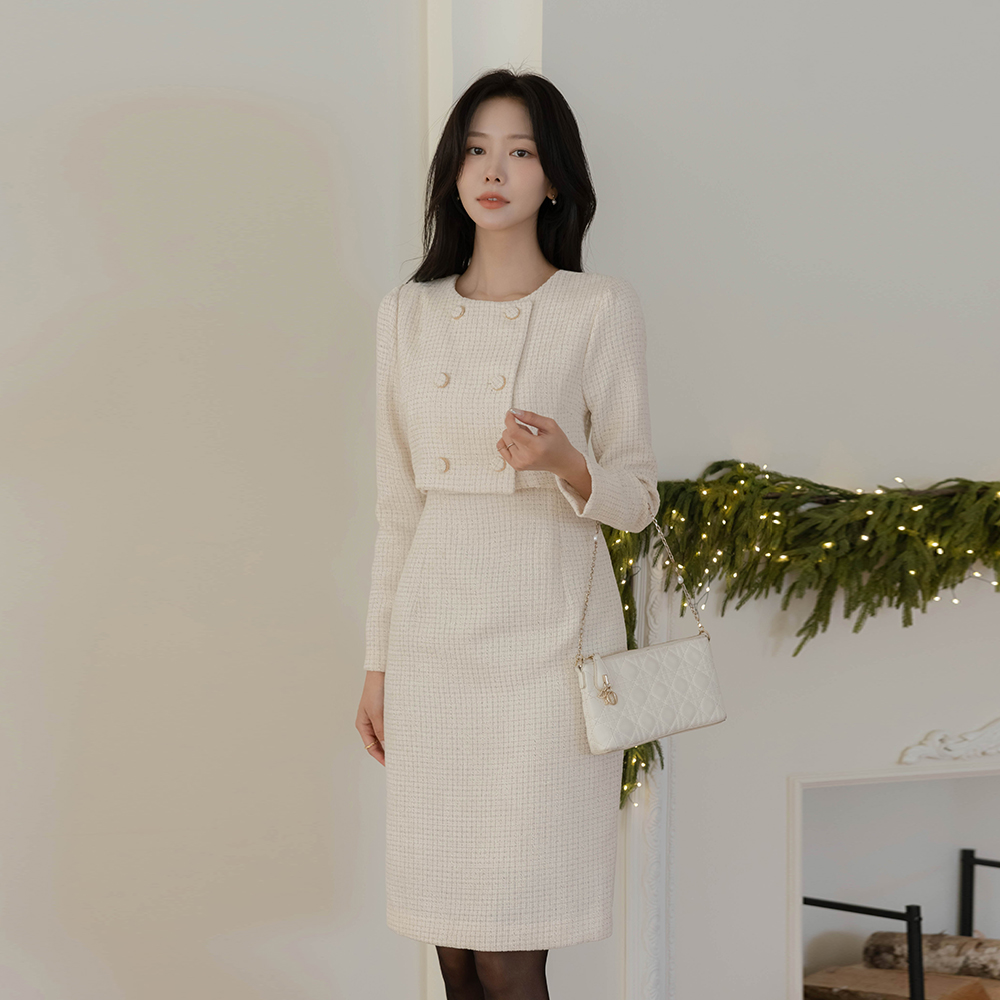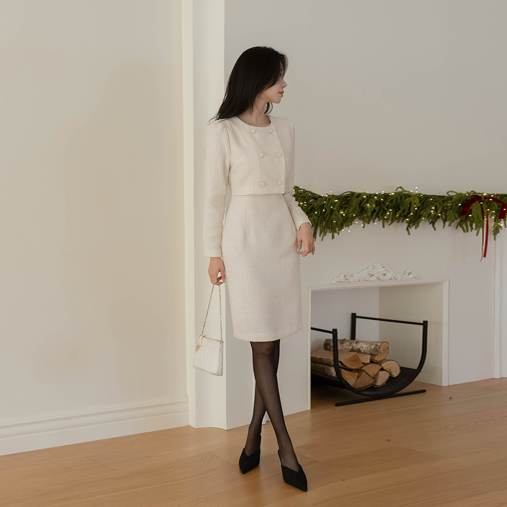 ツーピース スタイル Hライン ツイード ワンピース