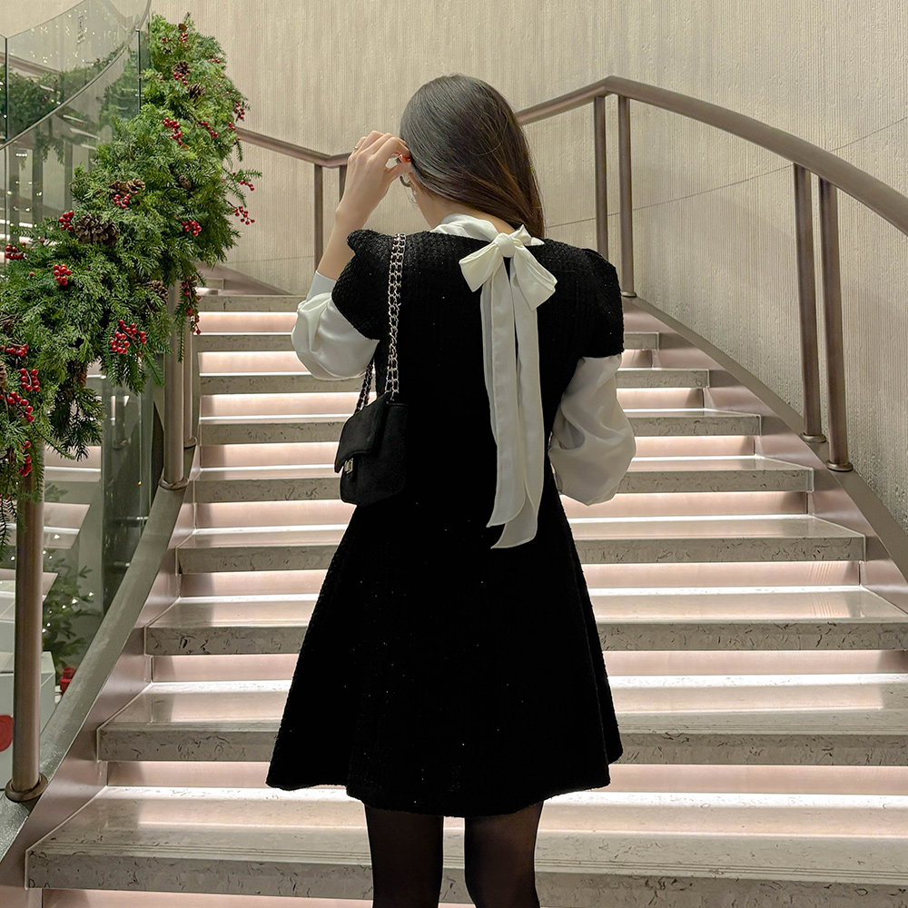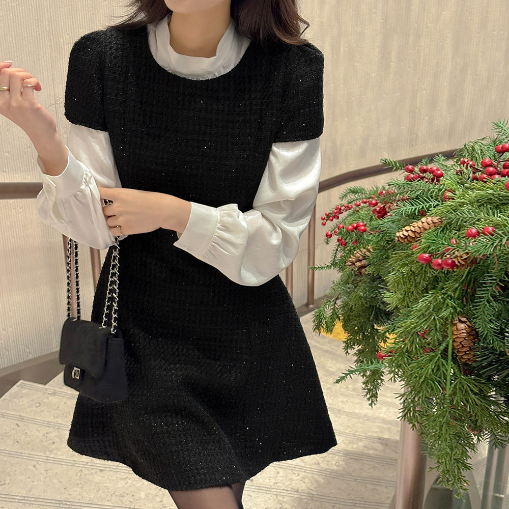 トゥインクル 半そで ツイード Aライン ミニ ワンピース