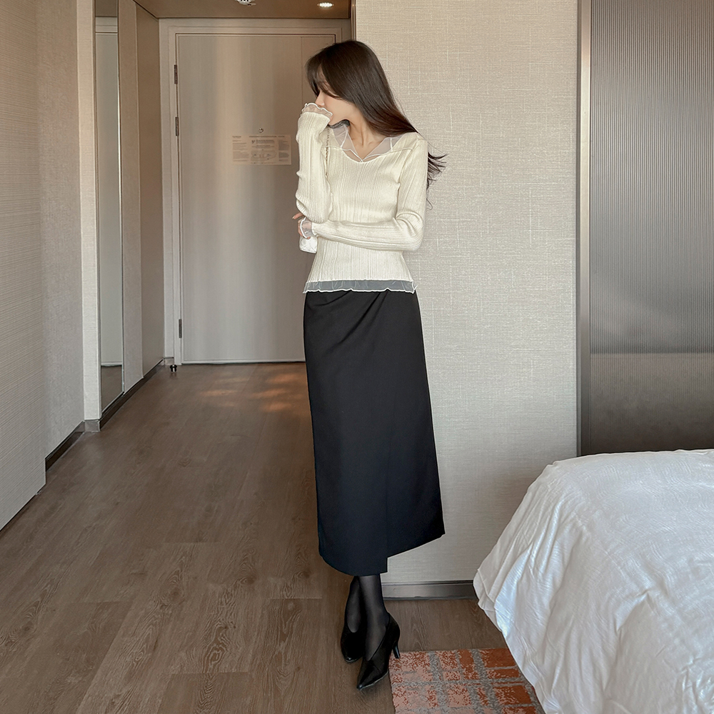 シースルー 配色 カラー ほっそりした ニット
