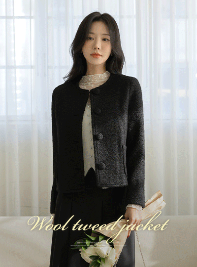 plain ウール ブークレ ツイード ジャケット