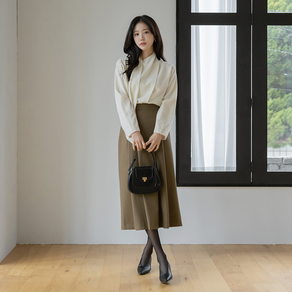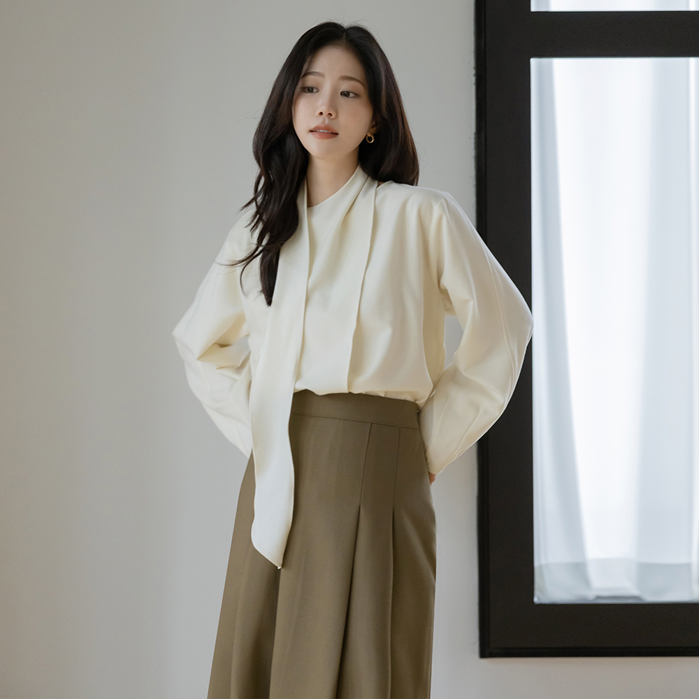 スカーフネック 겉기모 ウール ブラウス