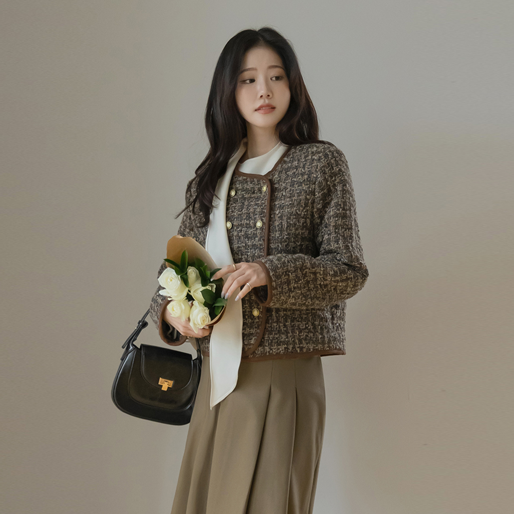 ミックス カラー 配色 キルティング ツイード ジャケット
