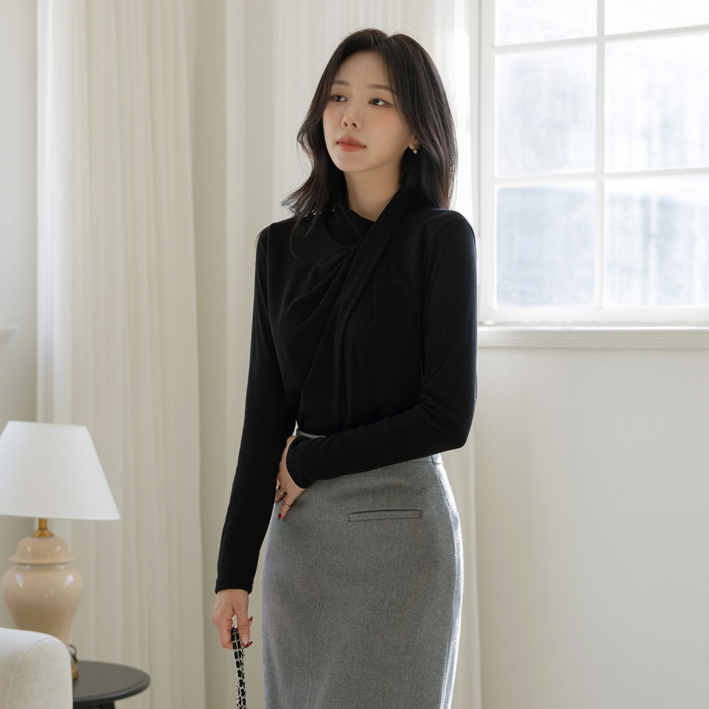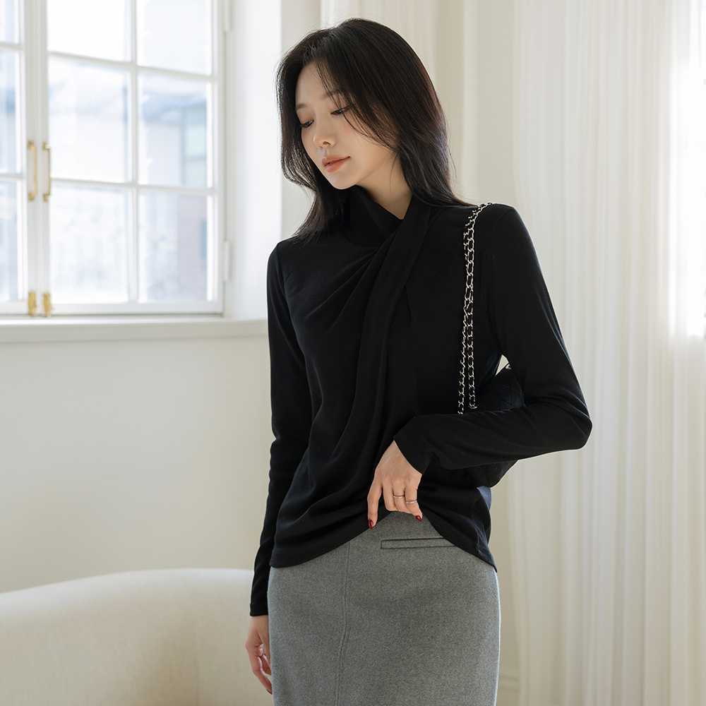 縒り アンバランス とっくりえり ティーシャツ