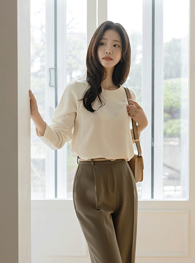 ラウンドネック ニット 配色 ラグラン ブラウス