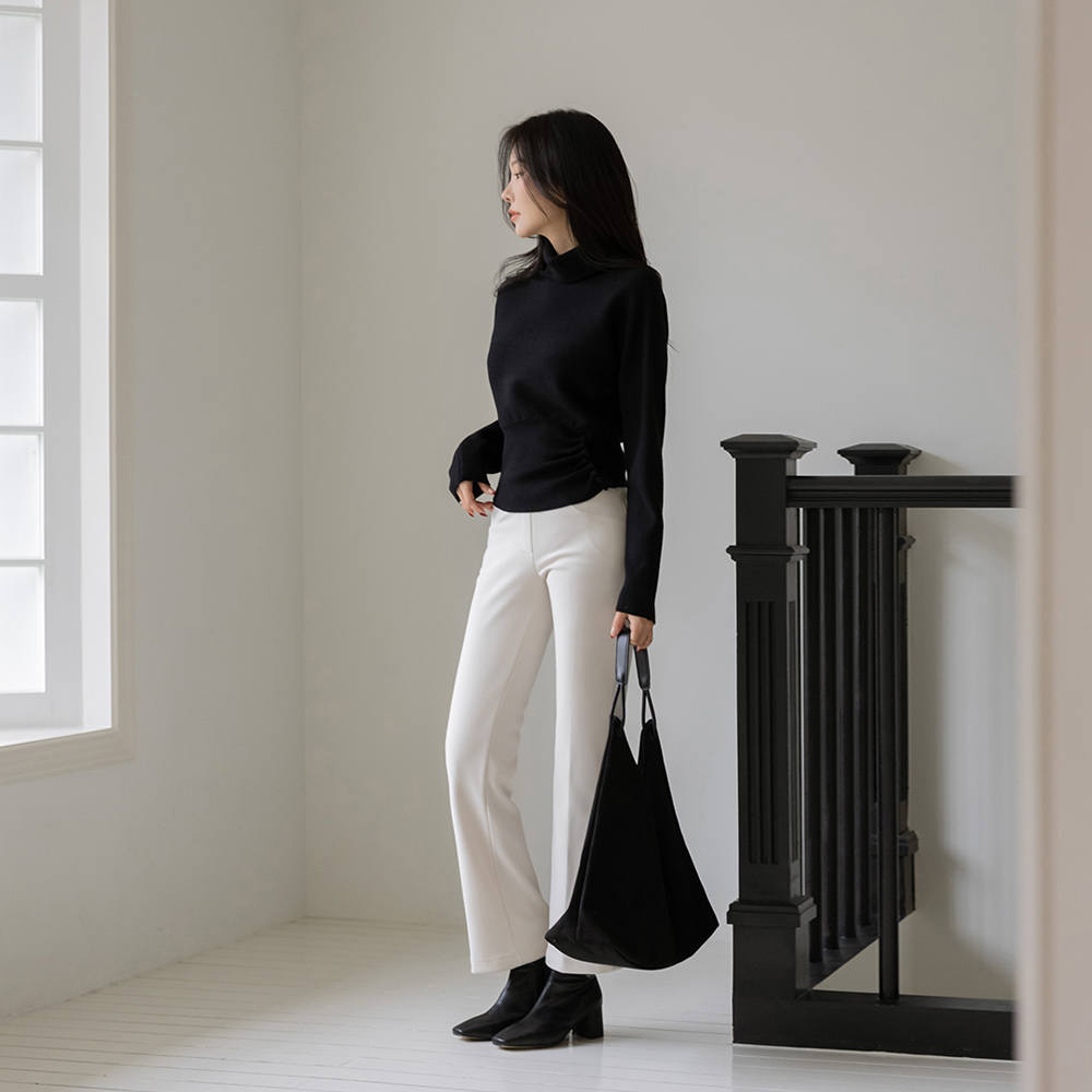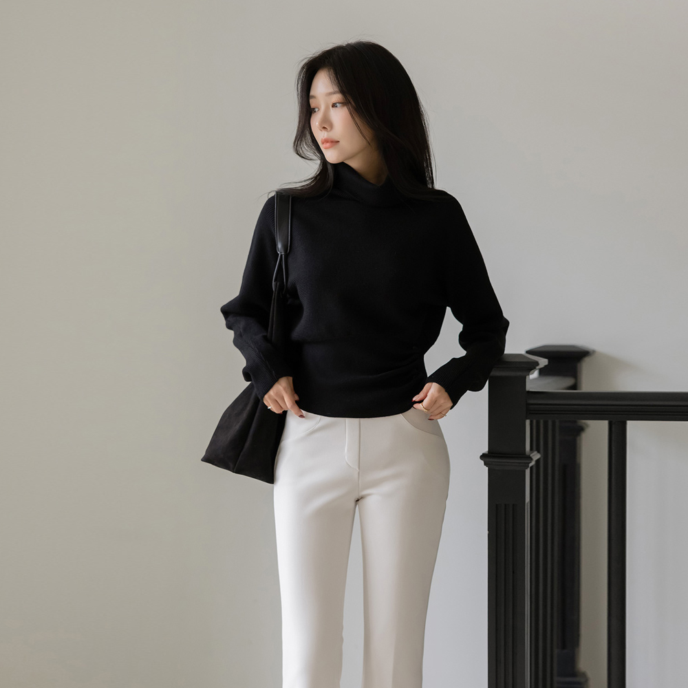 ハイネック シャーリング ボタン Batwing Sleeve ウール ニット