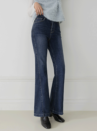 切開 ライン ブーツカット 起毛 デニム パンツ