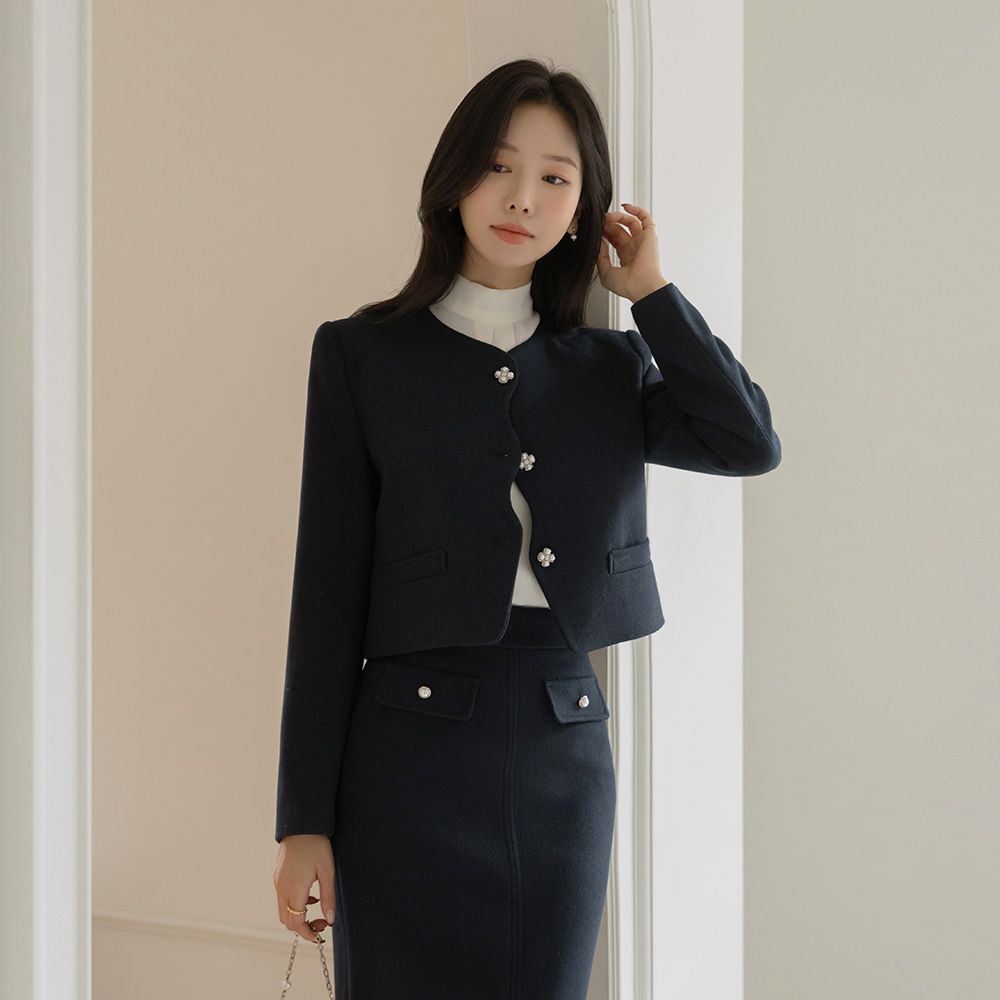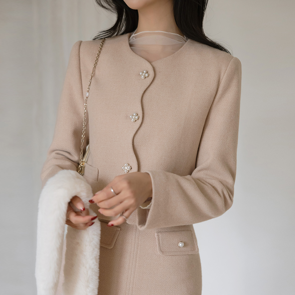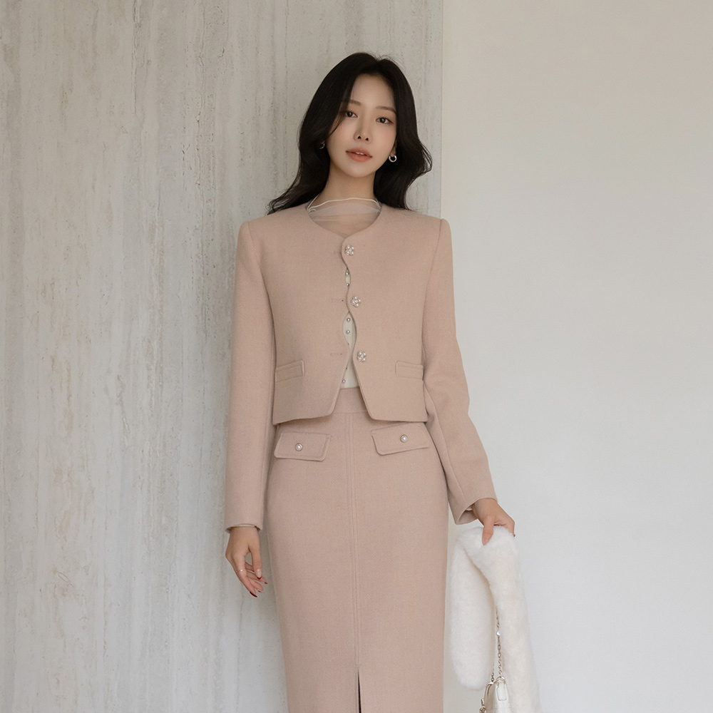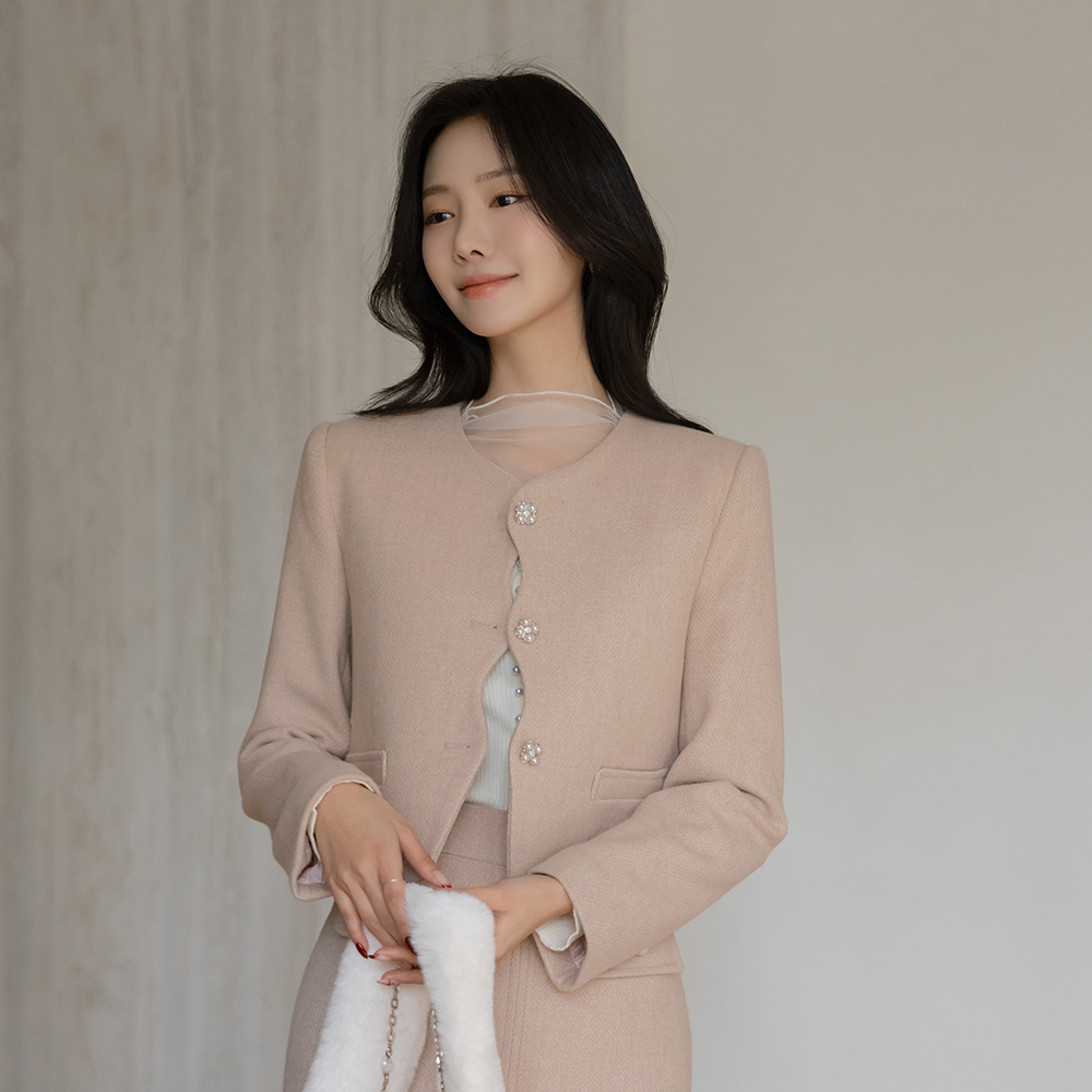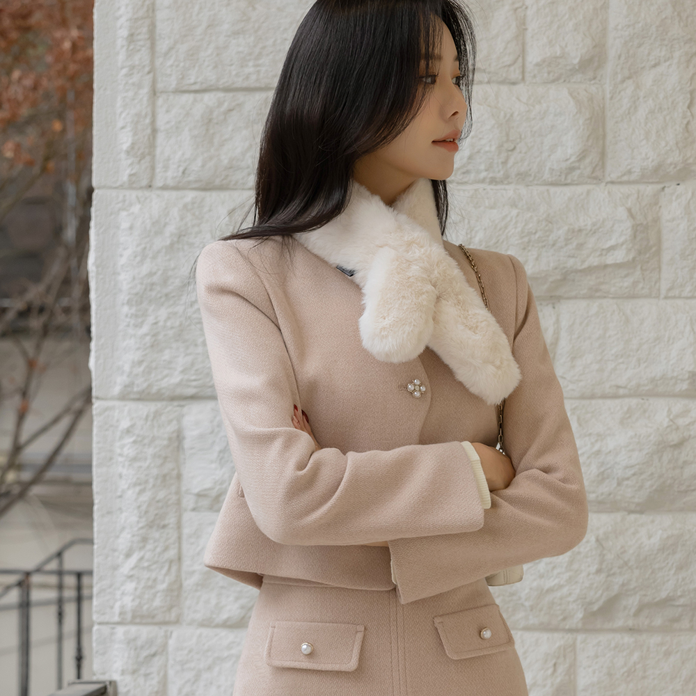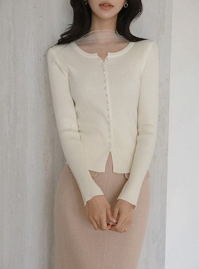 シースルー レイヤード セミハイネック 真珠 コール天 ニット
