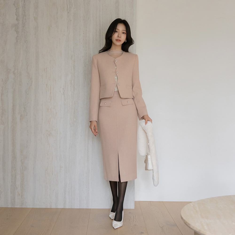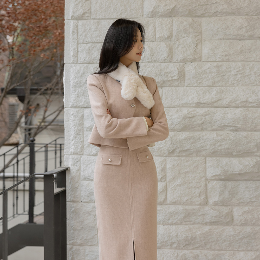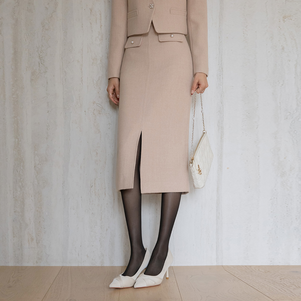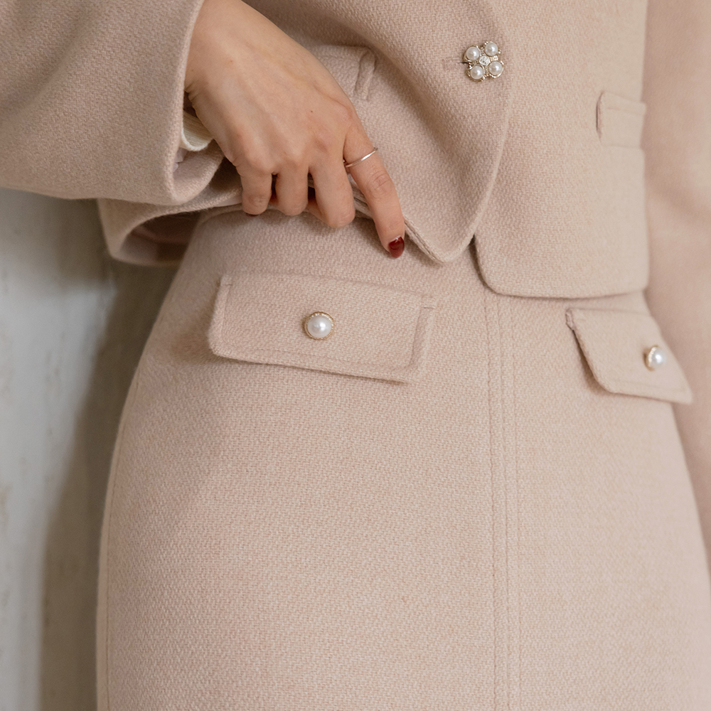 シースルー レイヤード セミハイネック 真珠 コール天 ニット