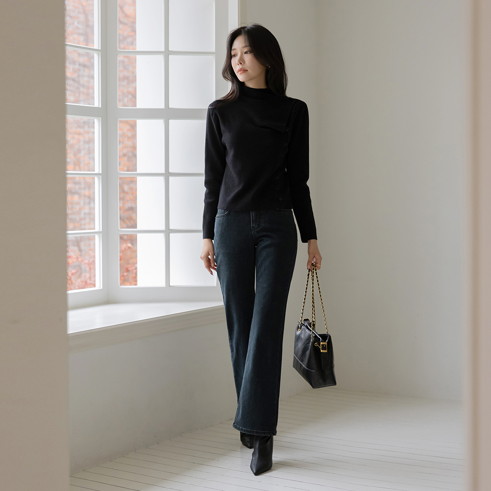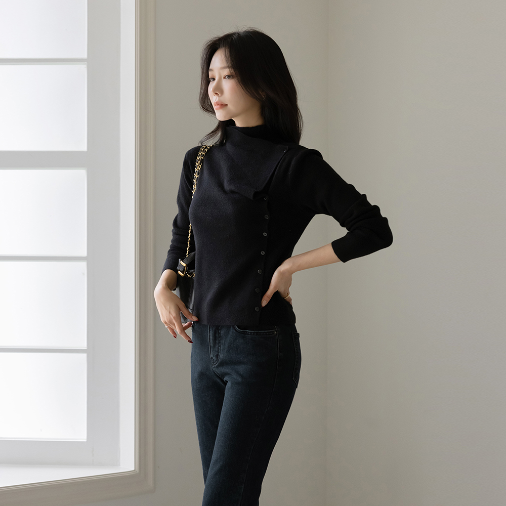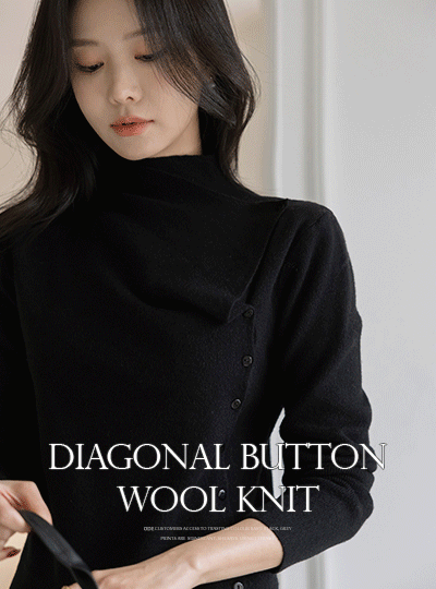 斜線 アンバランス ボタン ウール セミハイネック ニット