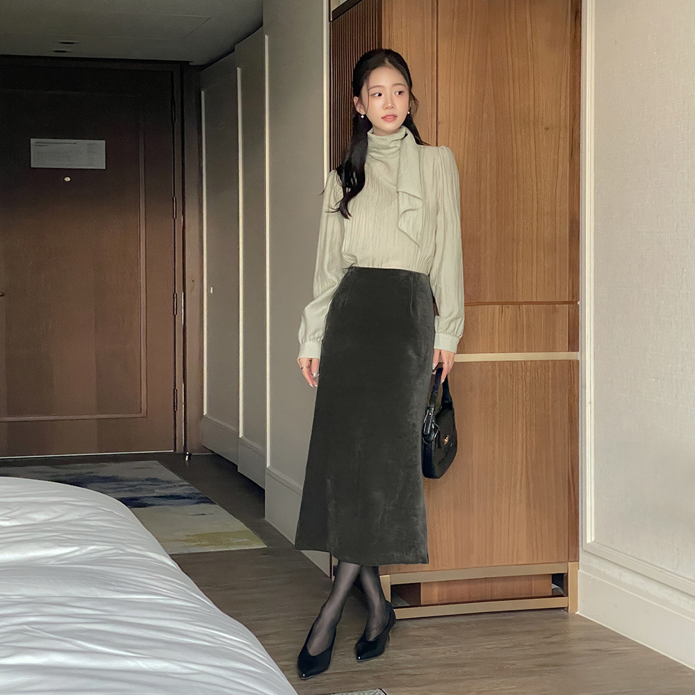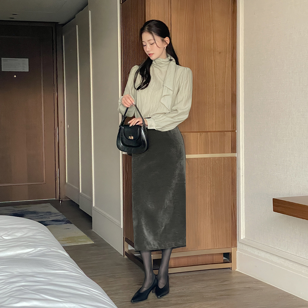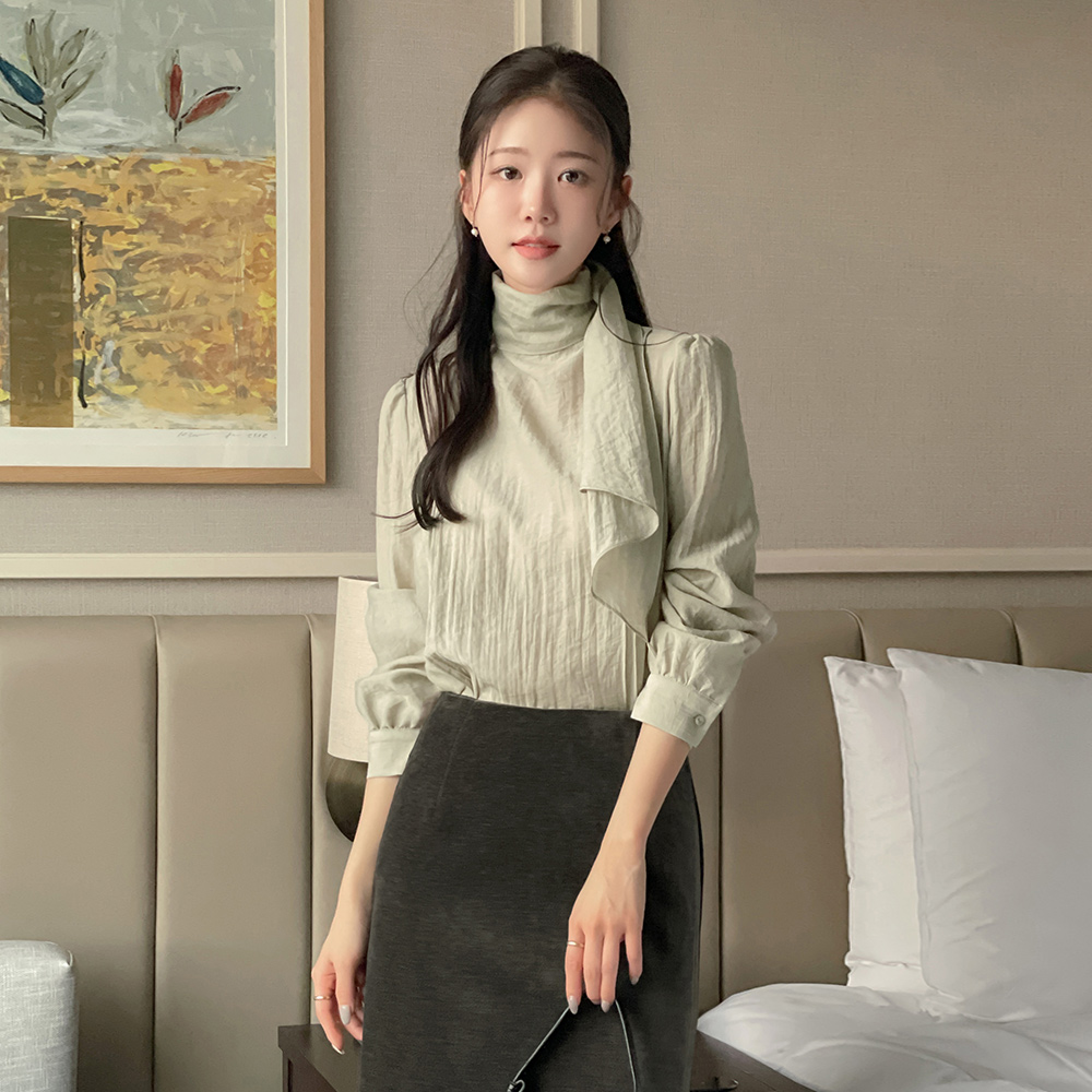 フェミニン スカーフネック うしろボタン ブラウス