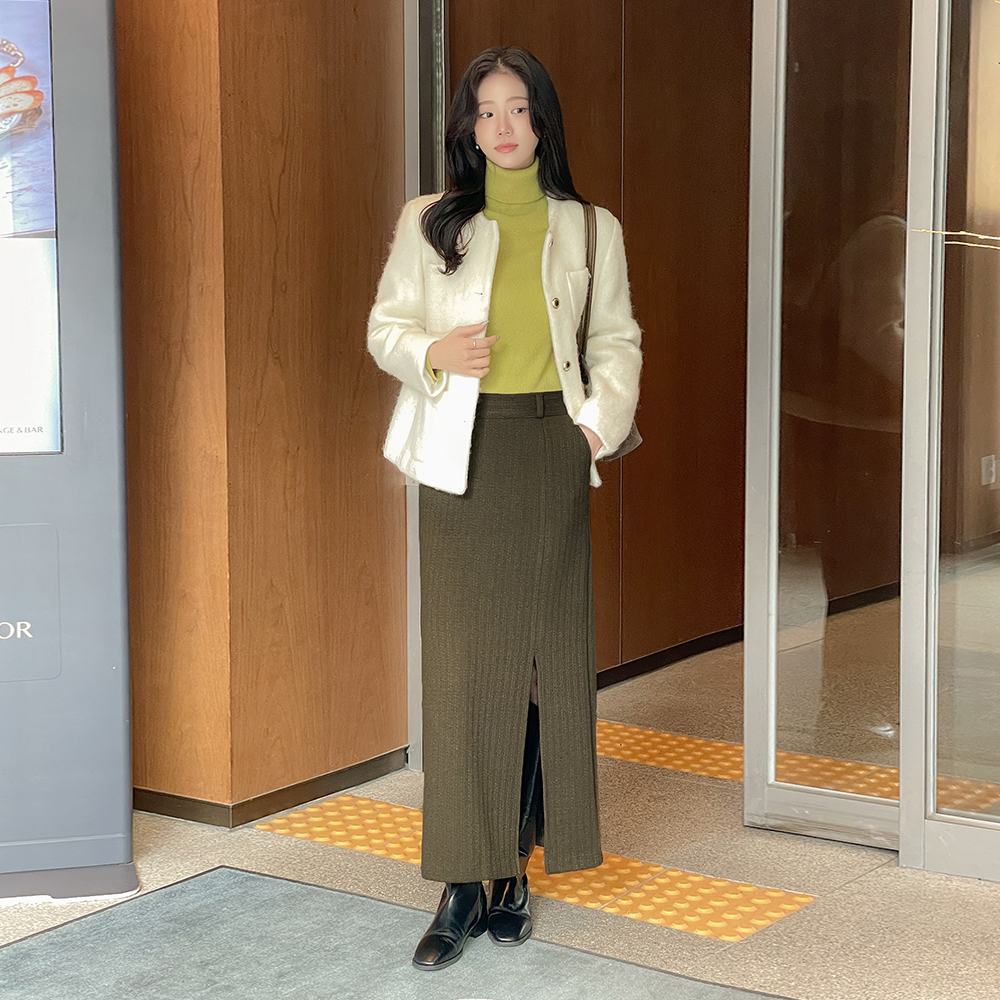 ニット ファブリック 起毛 Hライン ロング スリット スカート