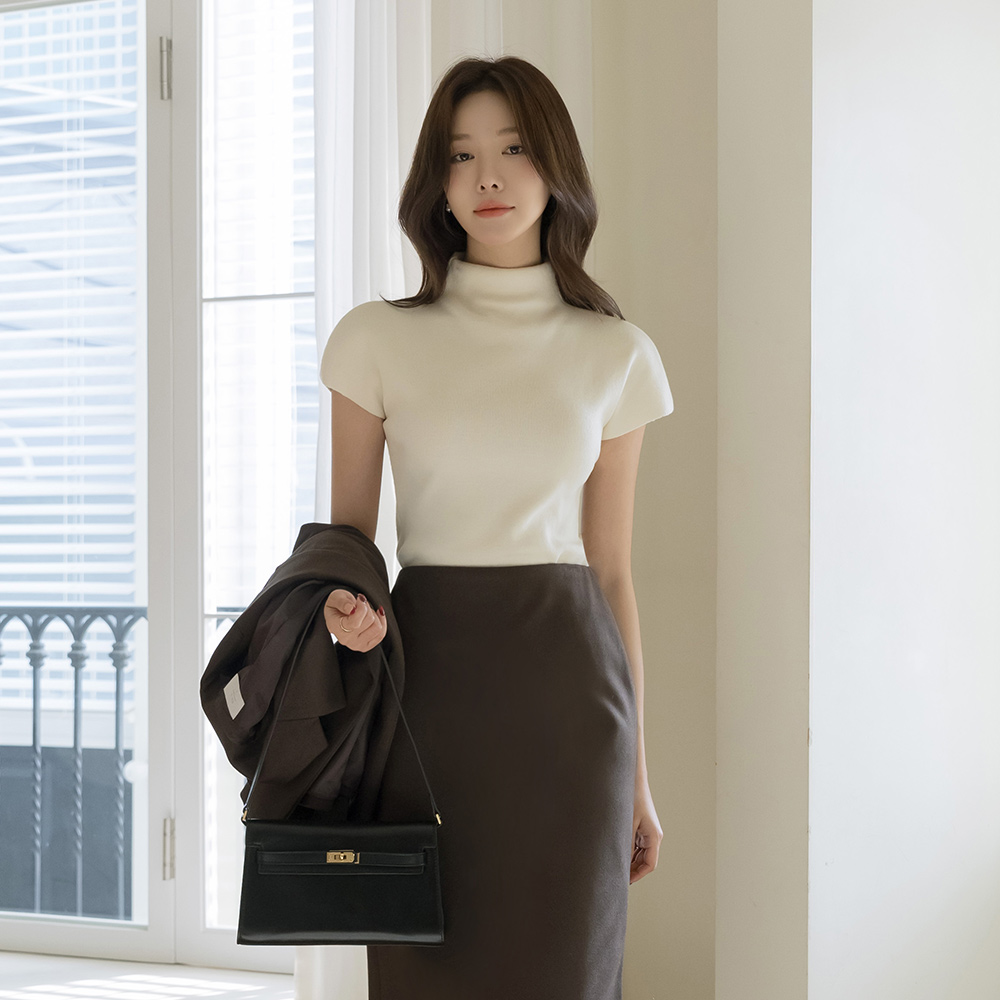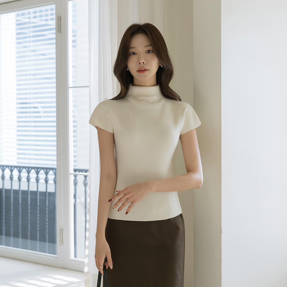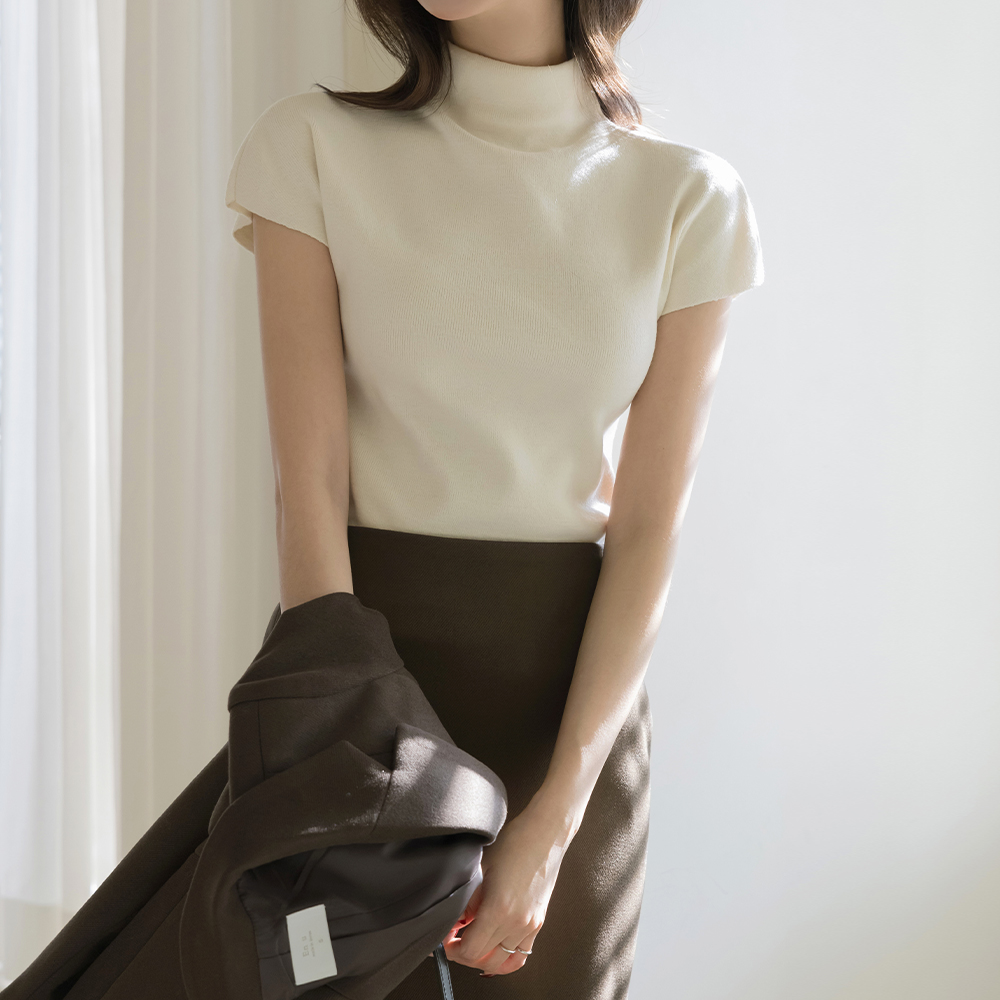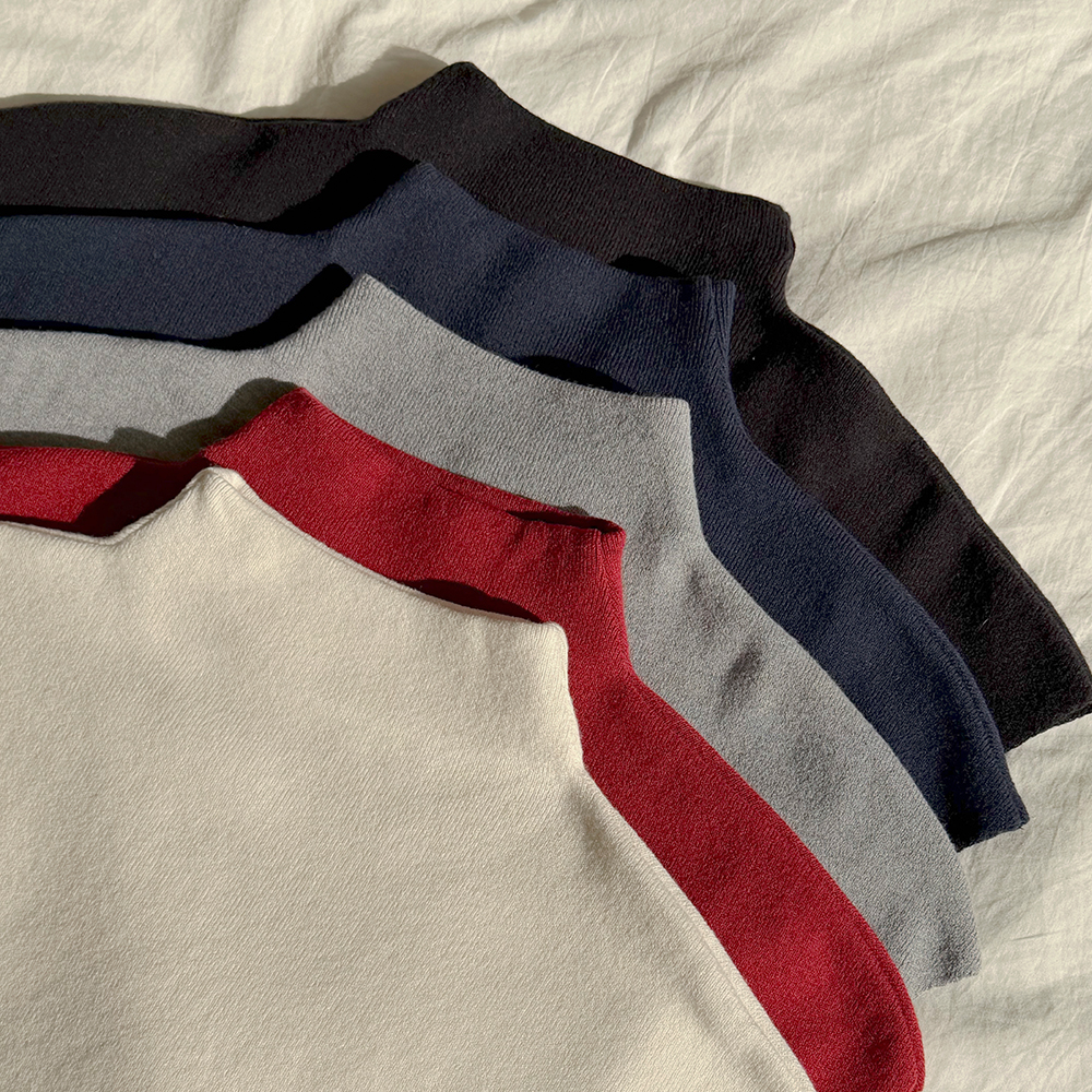 モダンハーフネックキャップニット