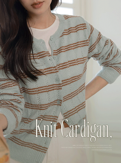 モヘア&ウール ストライプ パンチング ニット カーディガン