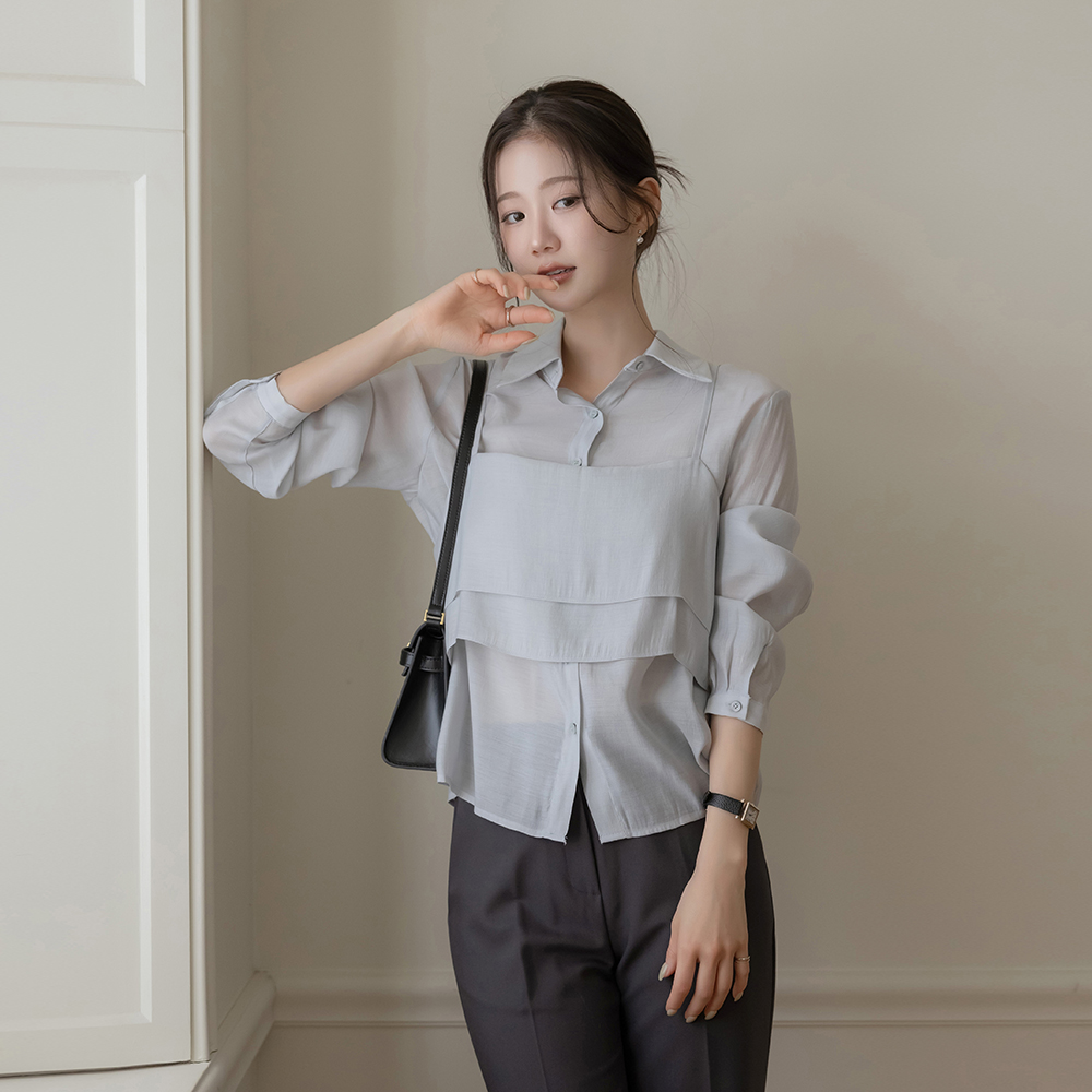 カラーネック ブラウス&ビュスチエ SET