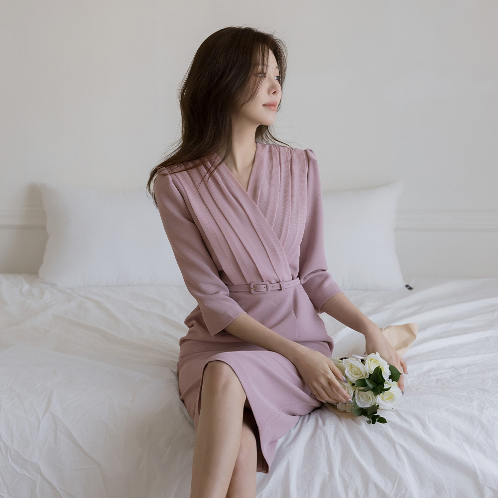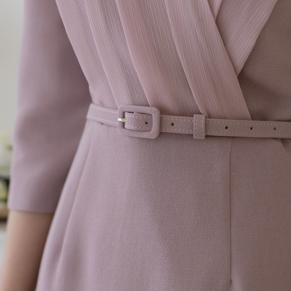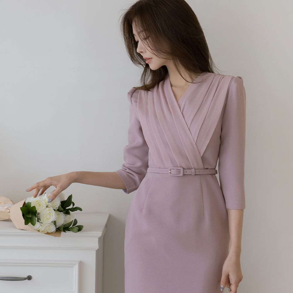 シフォン 二重 ラップスタイル Hライン ワンピース(+ベルト)