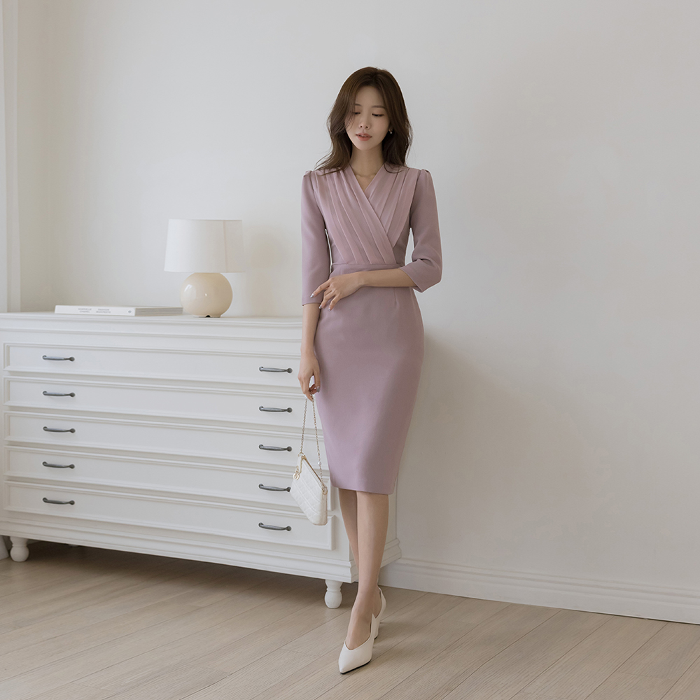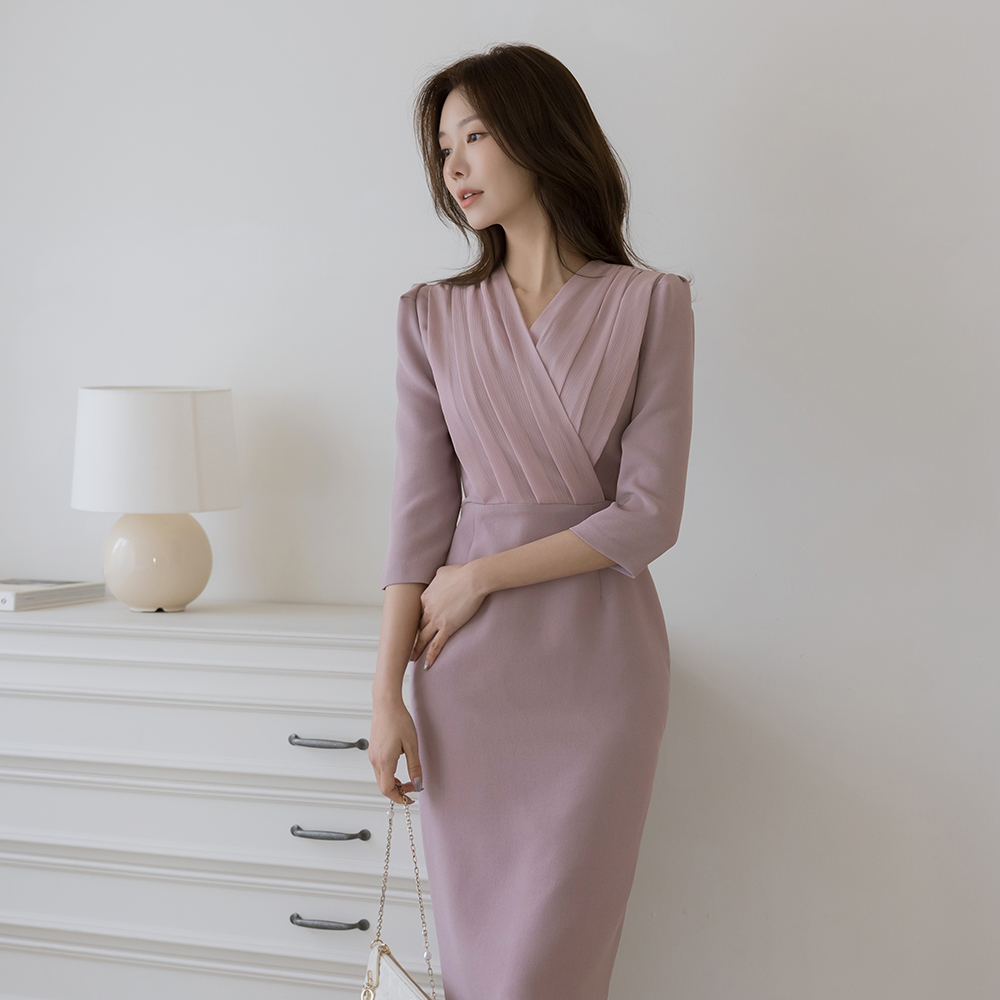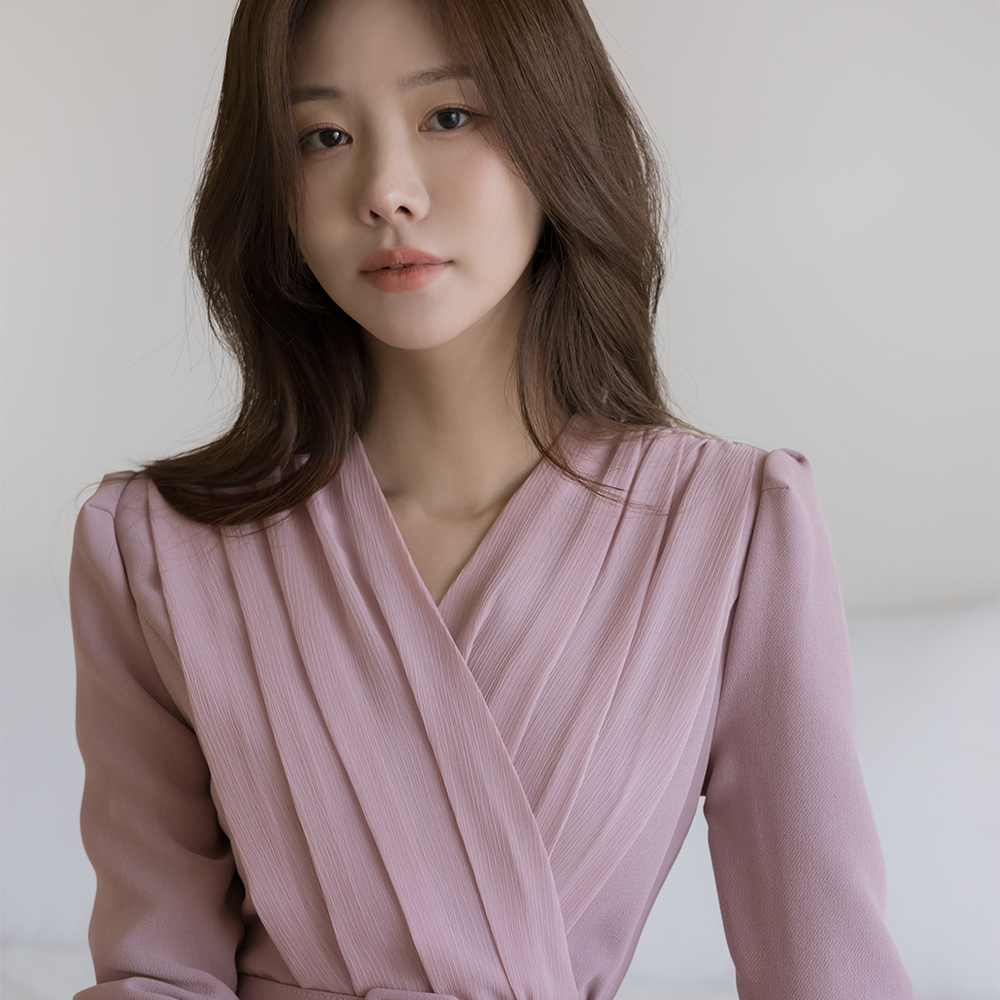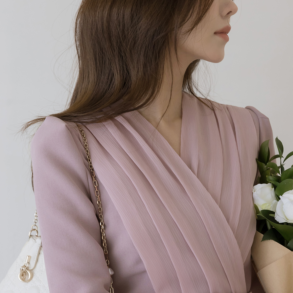 シフォン 二重 ラップスタイル Hライン ワンピース(+ベルト)