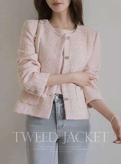 春季 ラウンドネック ツイード ジャケット