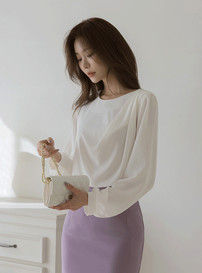 아테네 ラウンドネック ドレーピング ブラウス