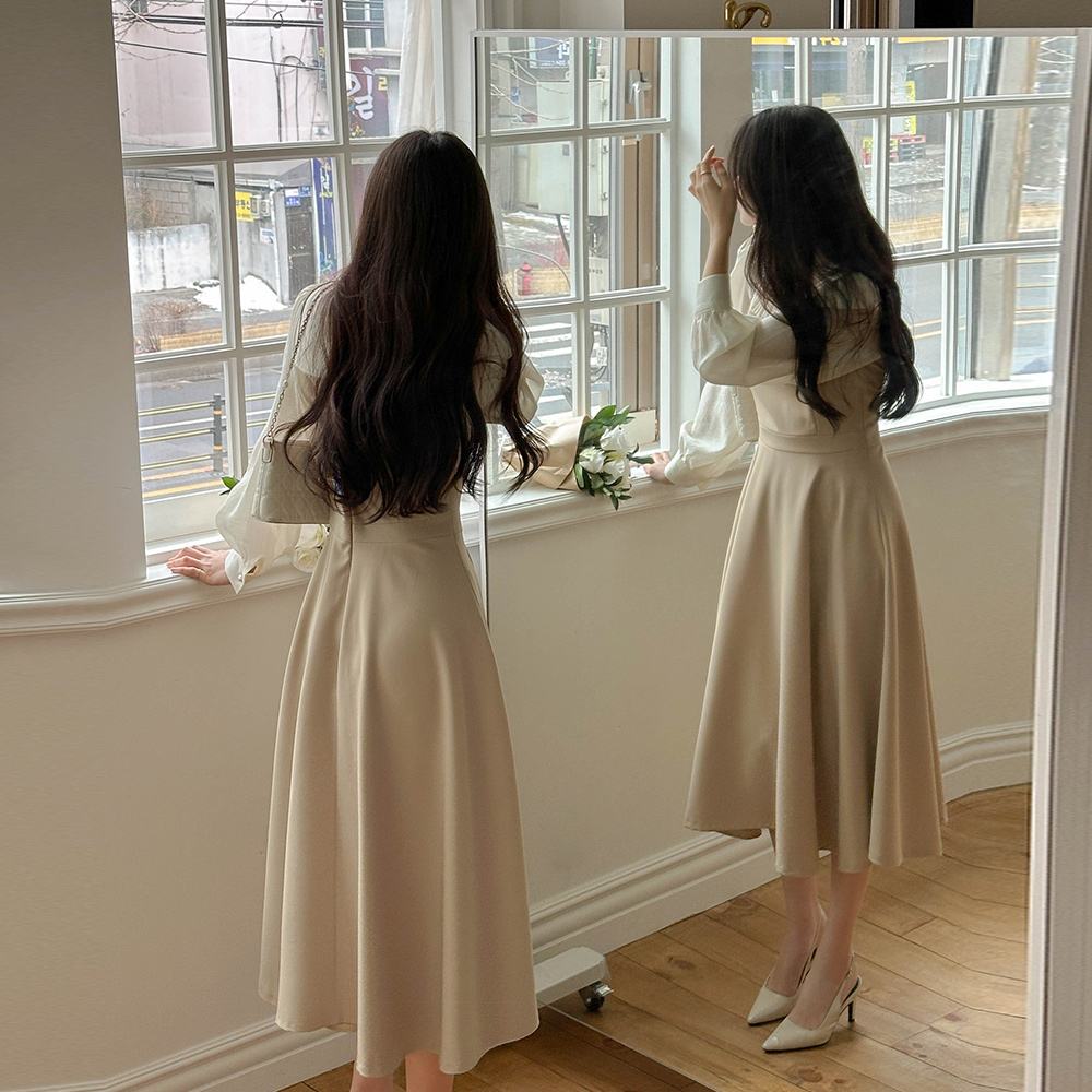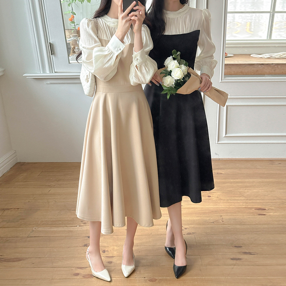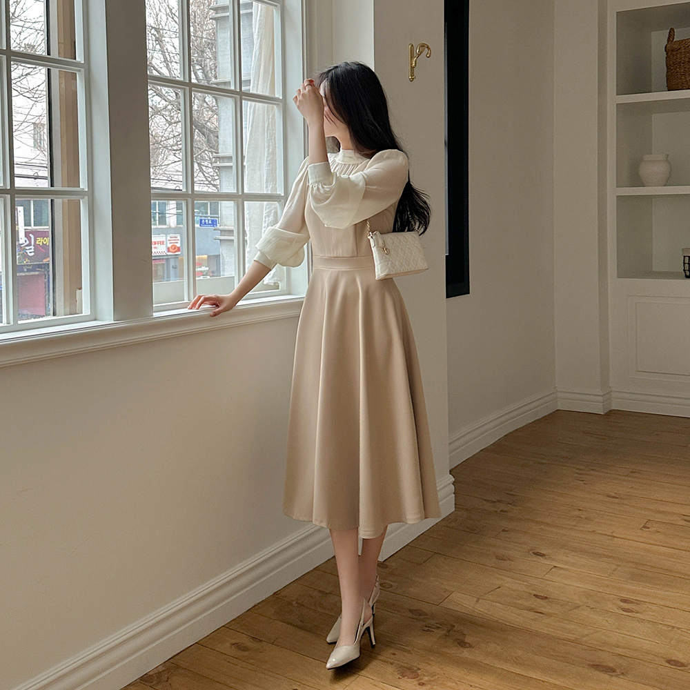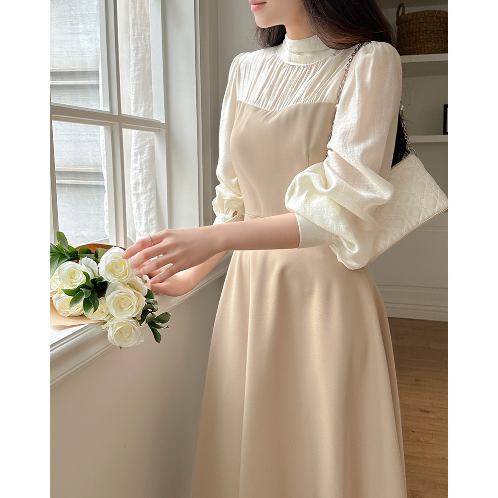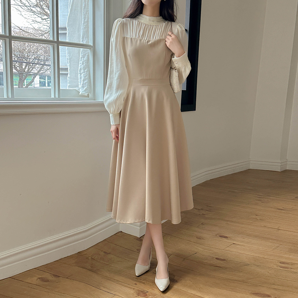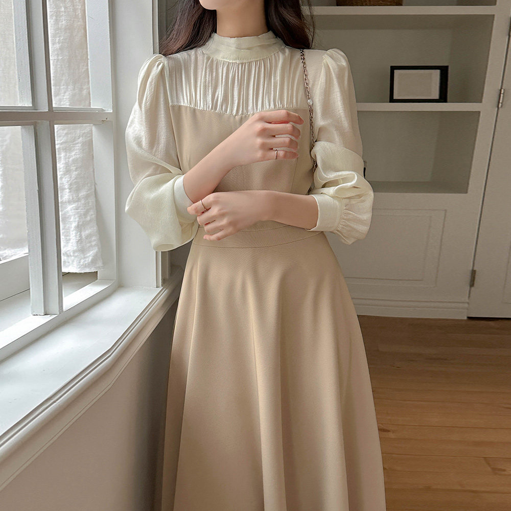 ハーフネック レイヤード Aライン ワンピース