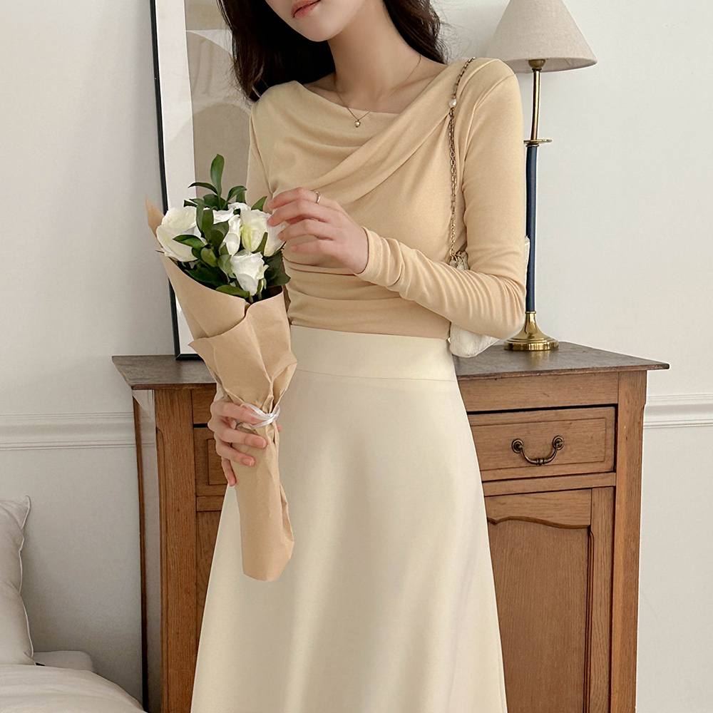 斜線 ドレーピング シャーリング 弾力 ティーシャツ