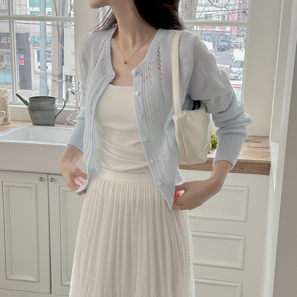 ロマンチック フリル 真珠 カーディガン