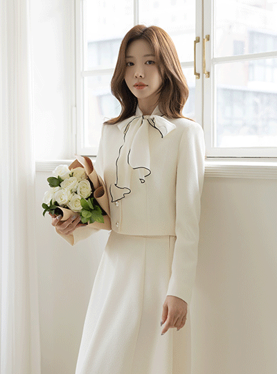 真珠 ツイード Set-up ジャケット(+スカーフ)