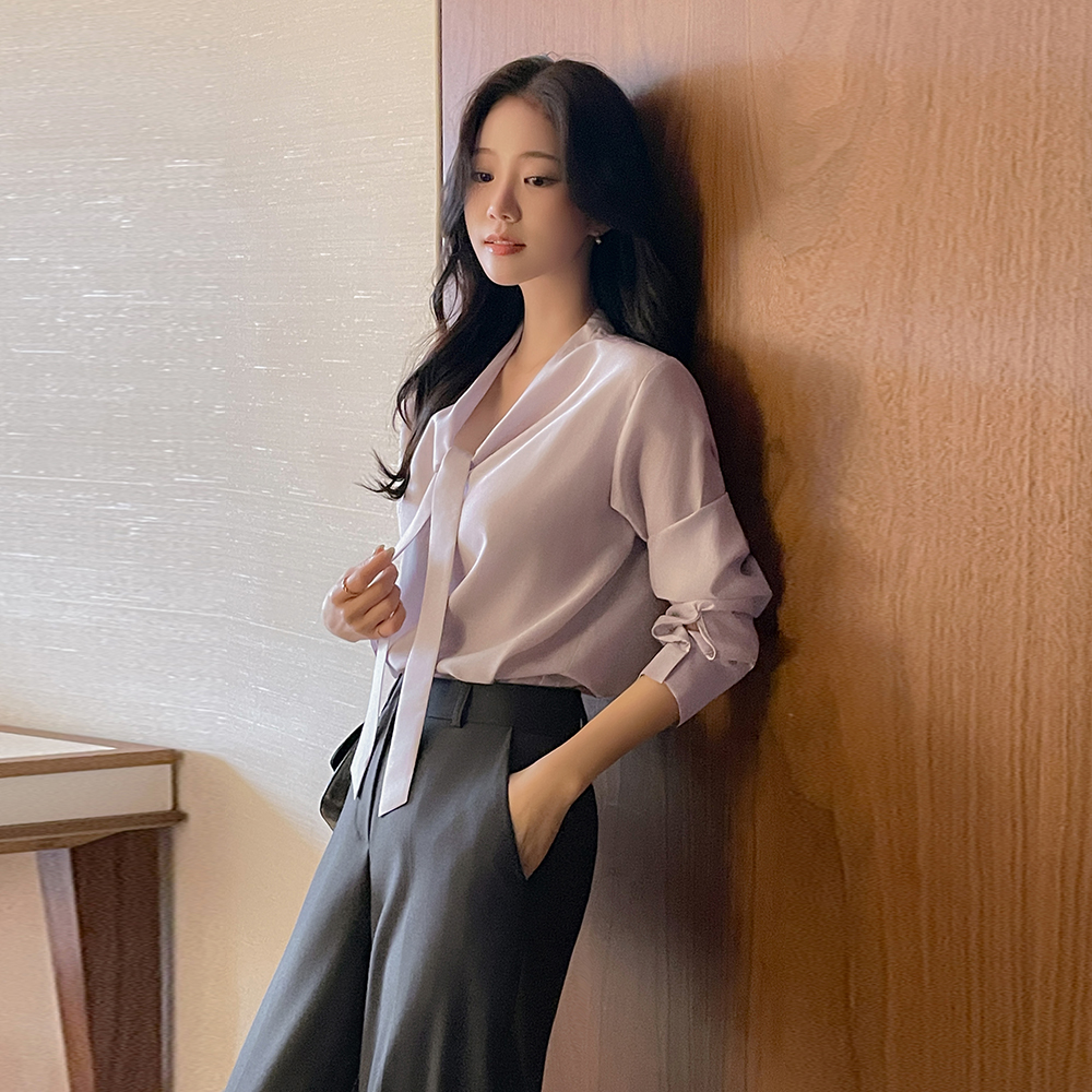 タイネック グロー 長袖 ブラウス