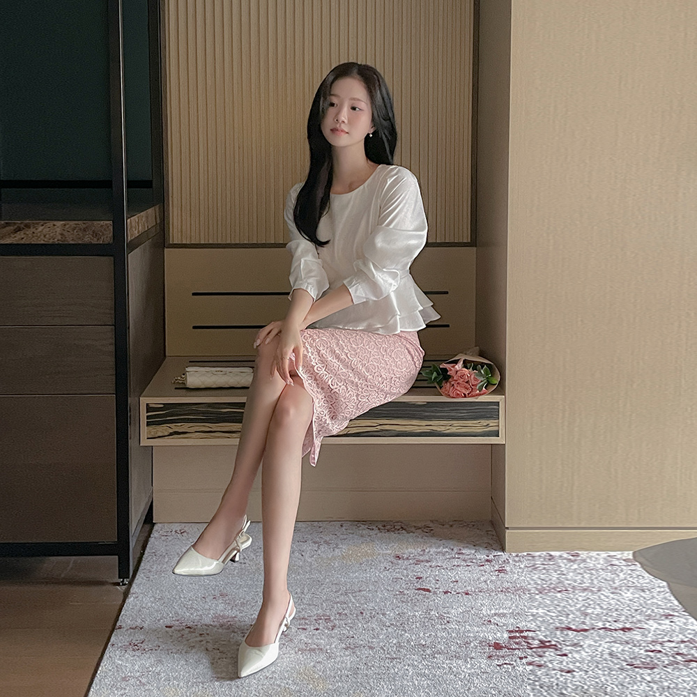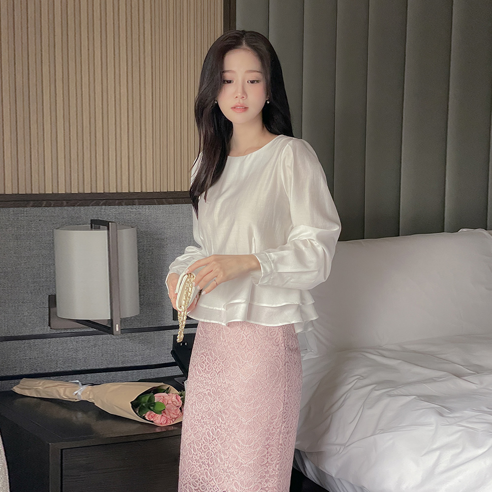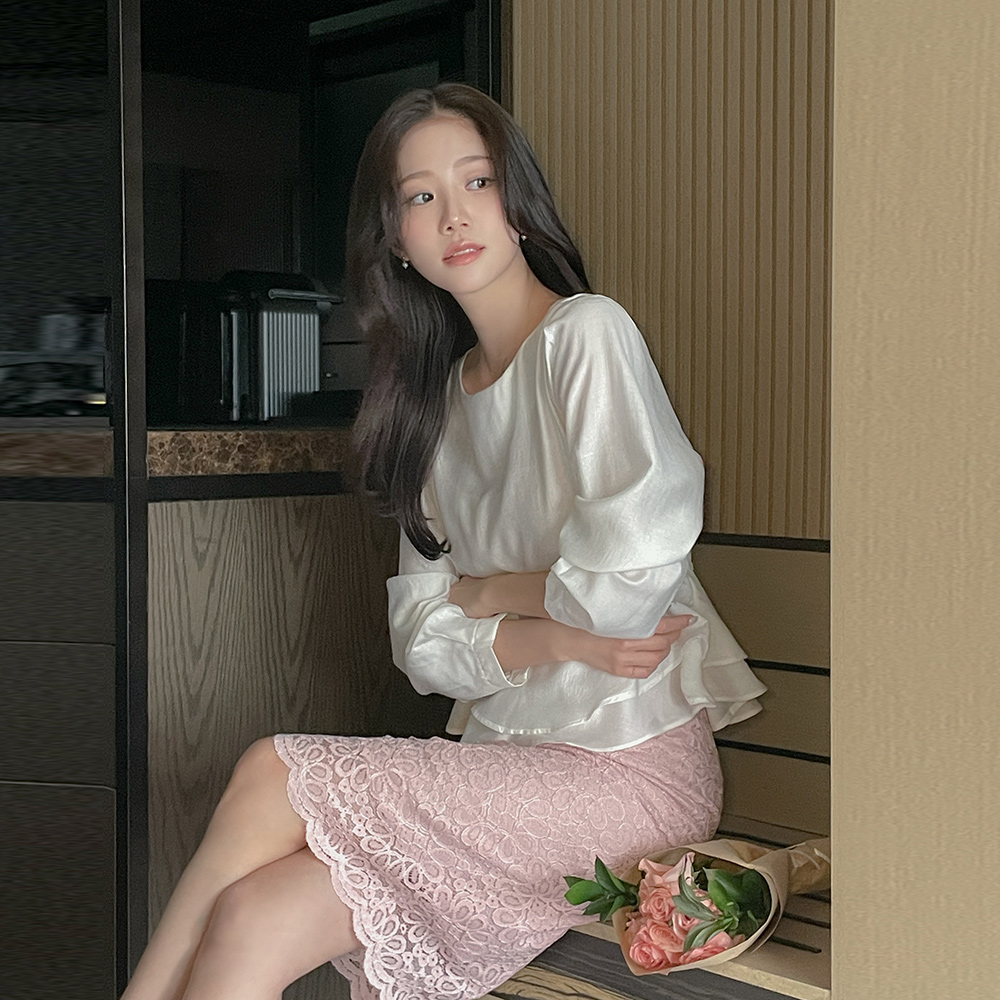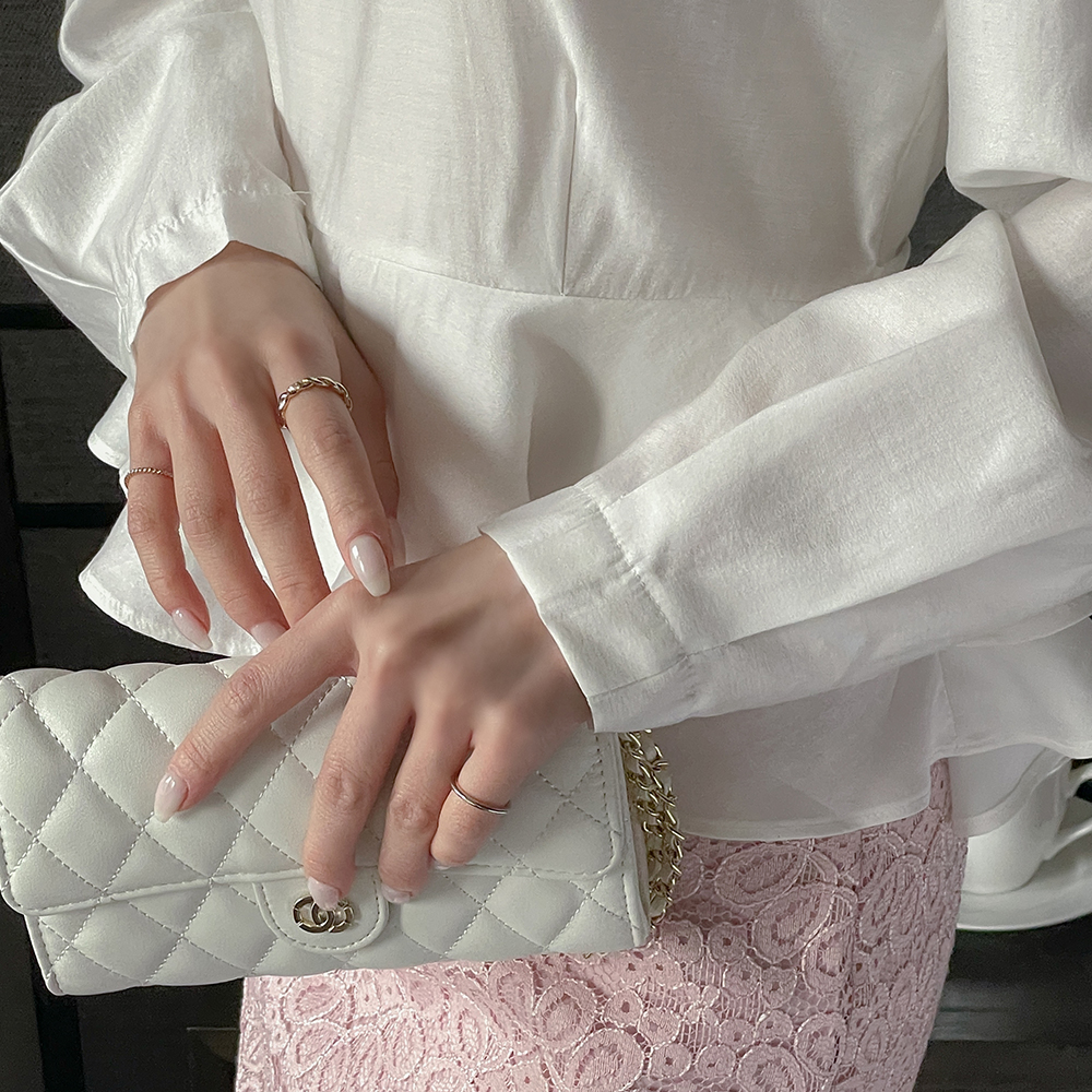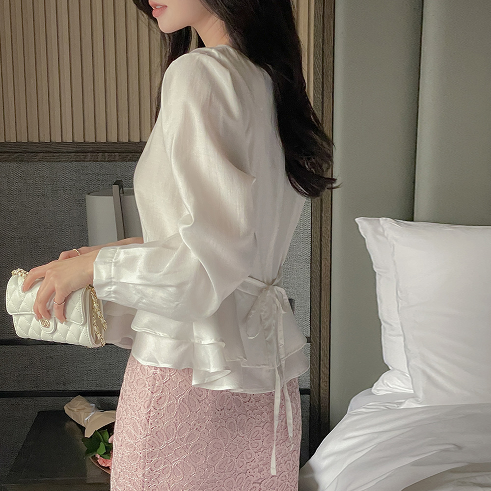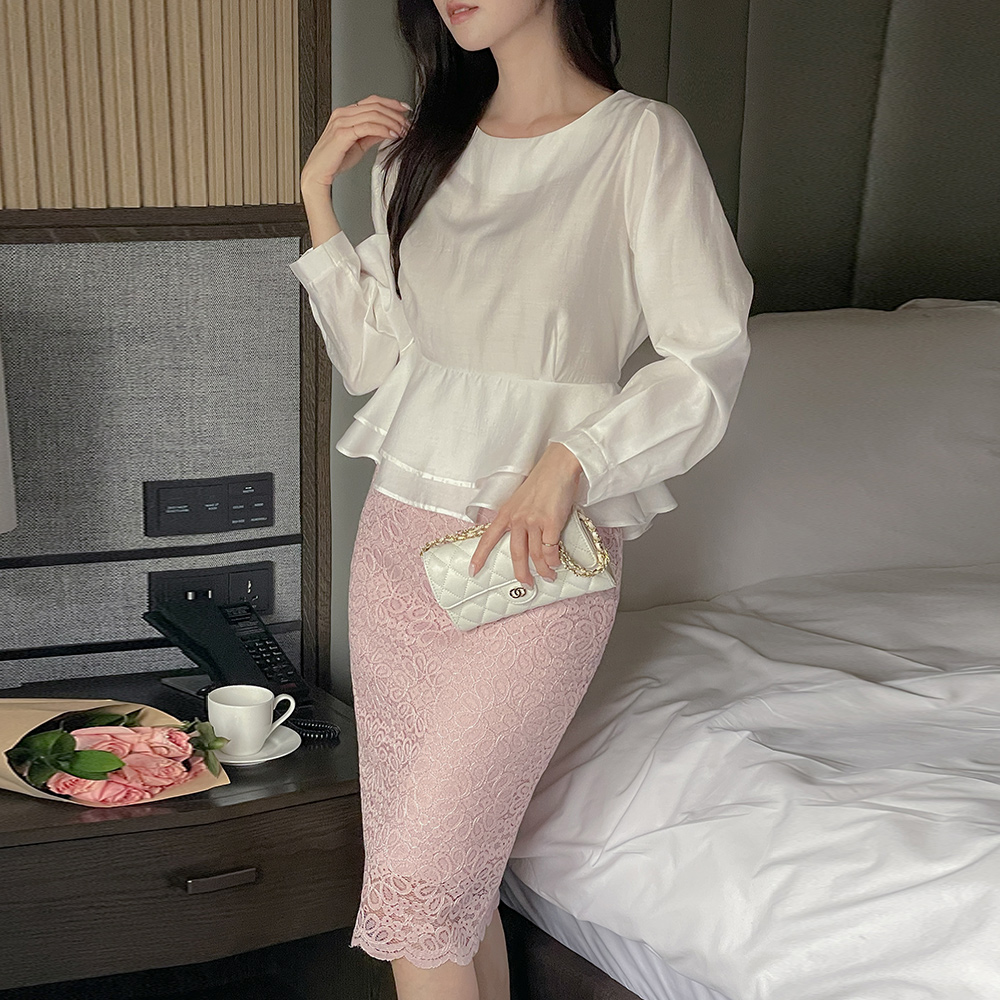 ラウンドネック ベルト 二重 ペプラム ブラウス