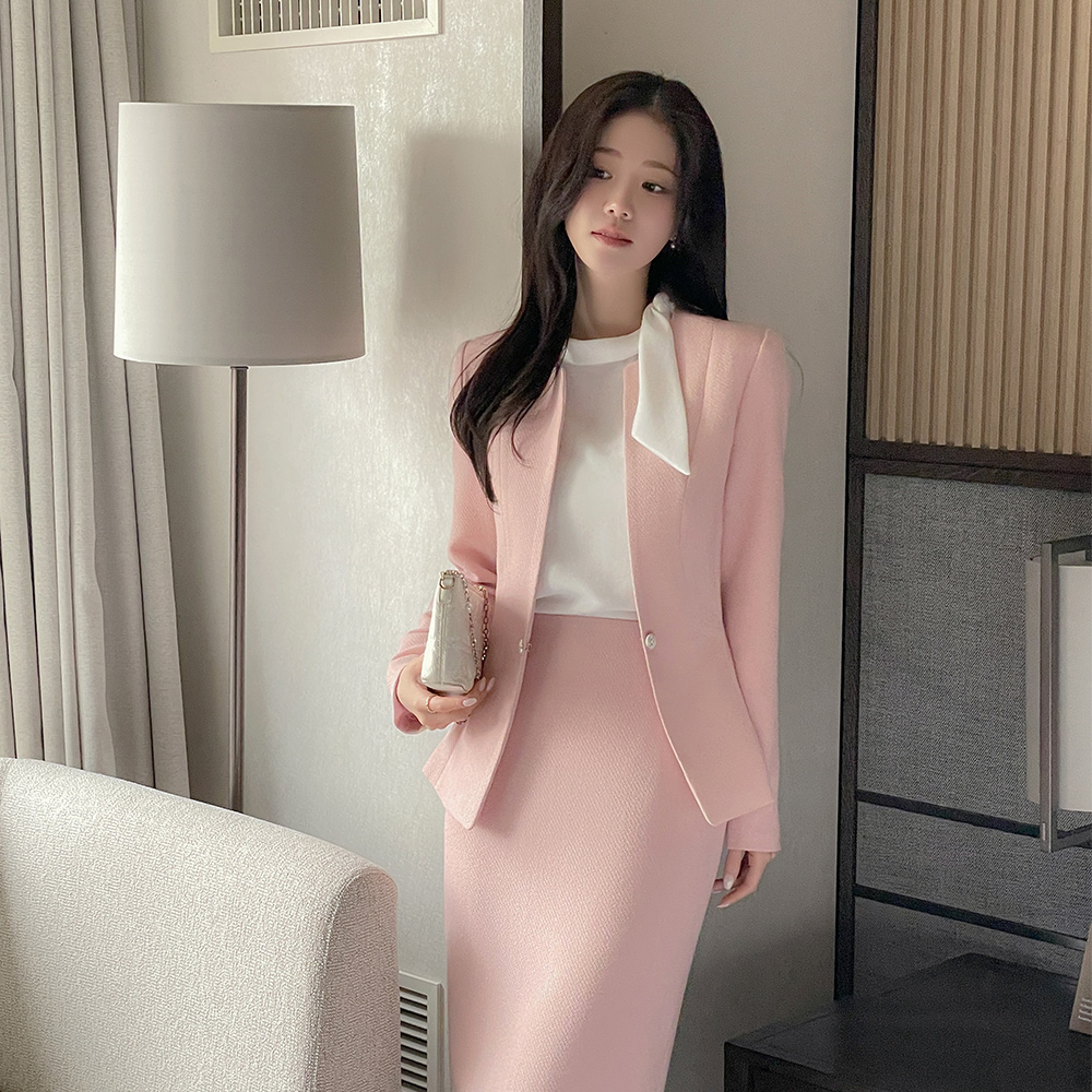 미셸 ノーカラー ペプラム ツイード Set-up ジャケット