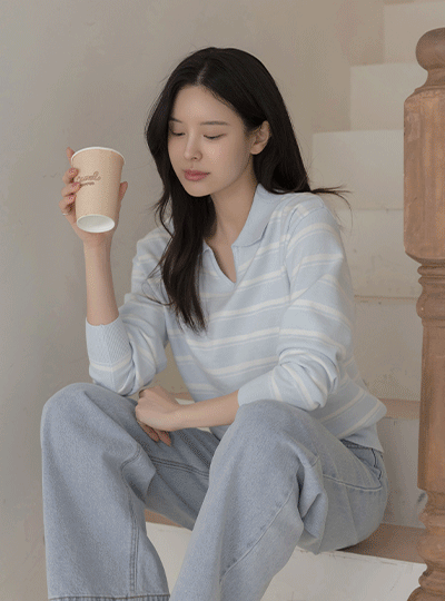 キャンデー カラー 切開ネック ストライプ ニット