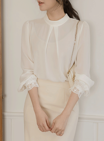 セミハイネック ピンタック 袖 レイス ブラウス