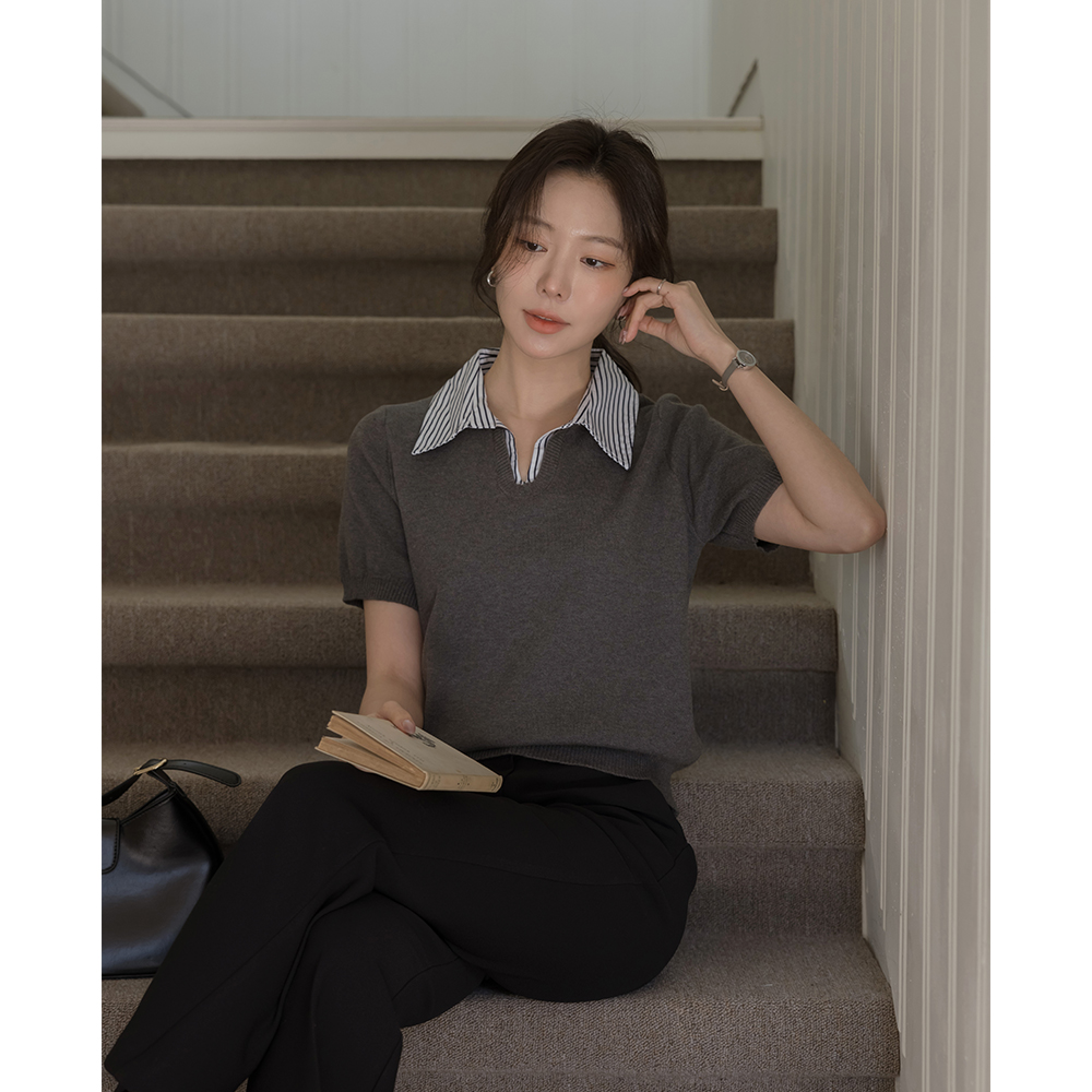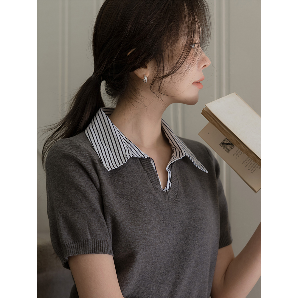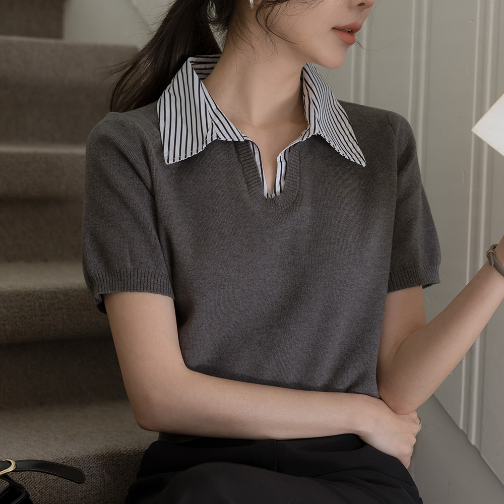 ストライプ シャツ 레이어링 半そで ニット