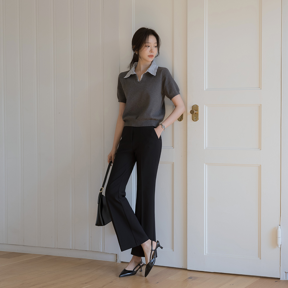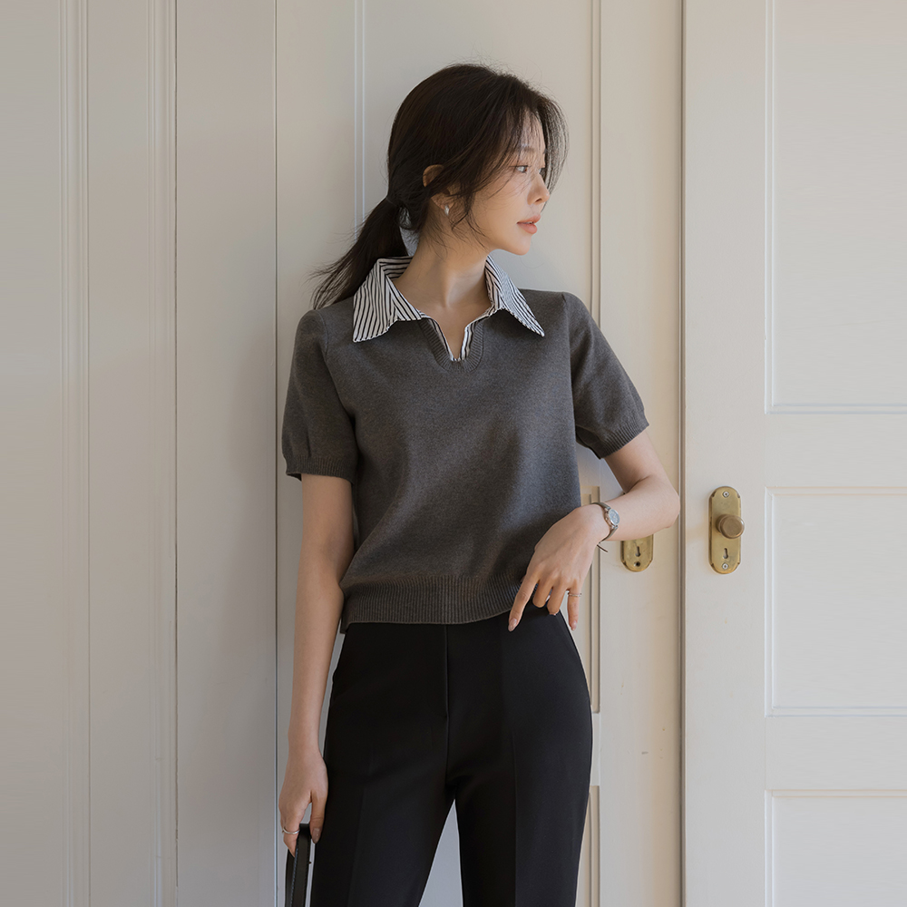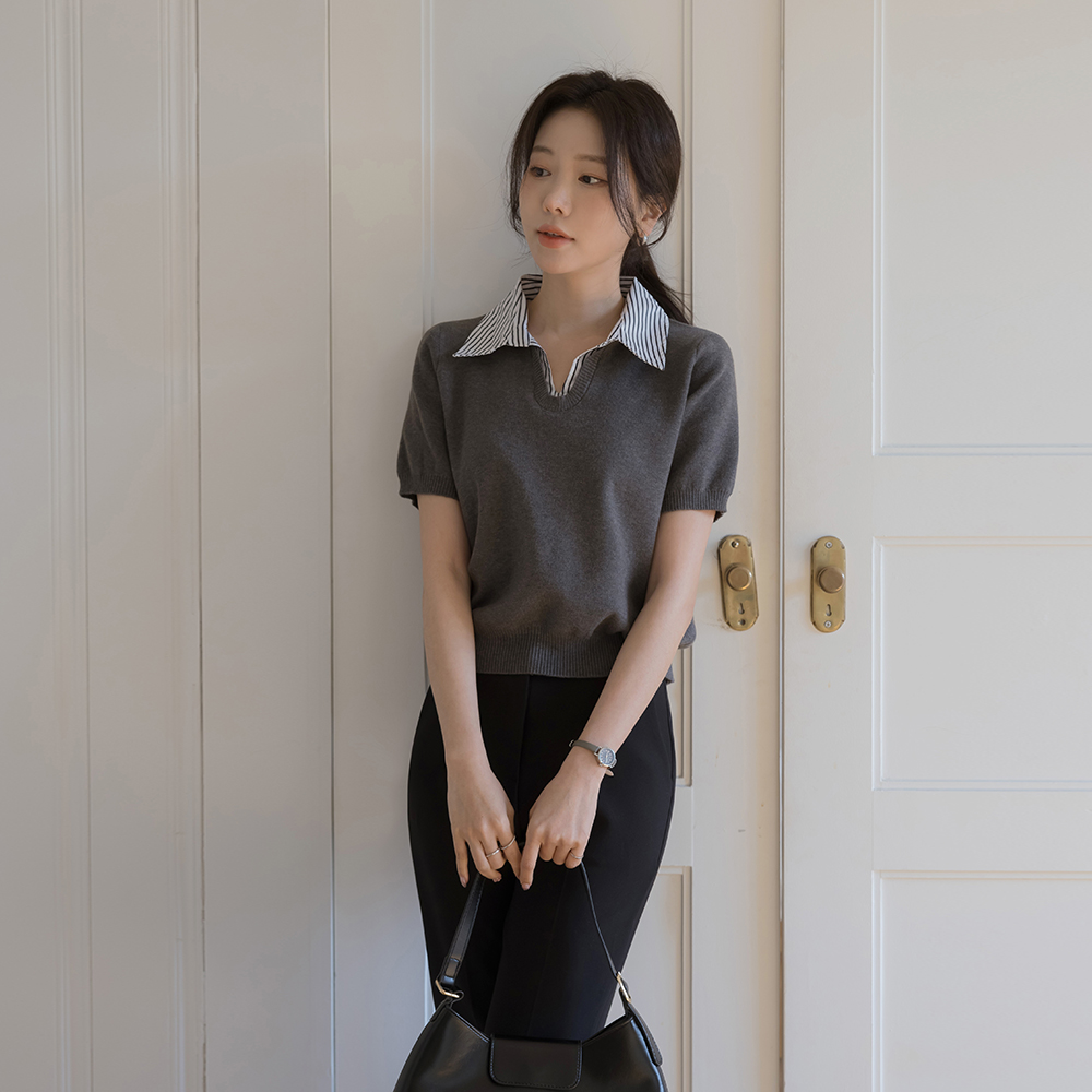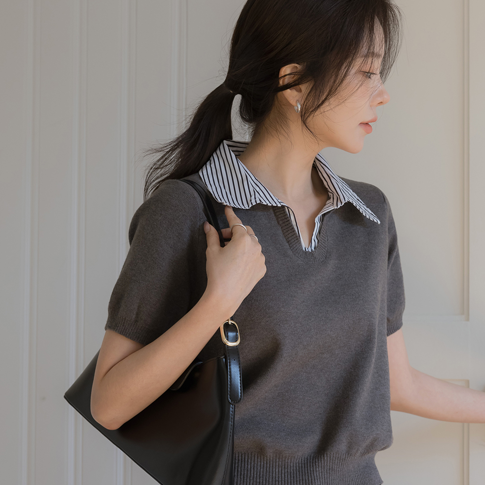 ストライプ シャツ 레이어링 半そで ニット