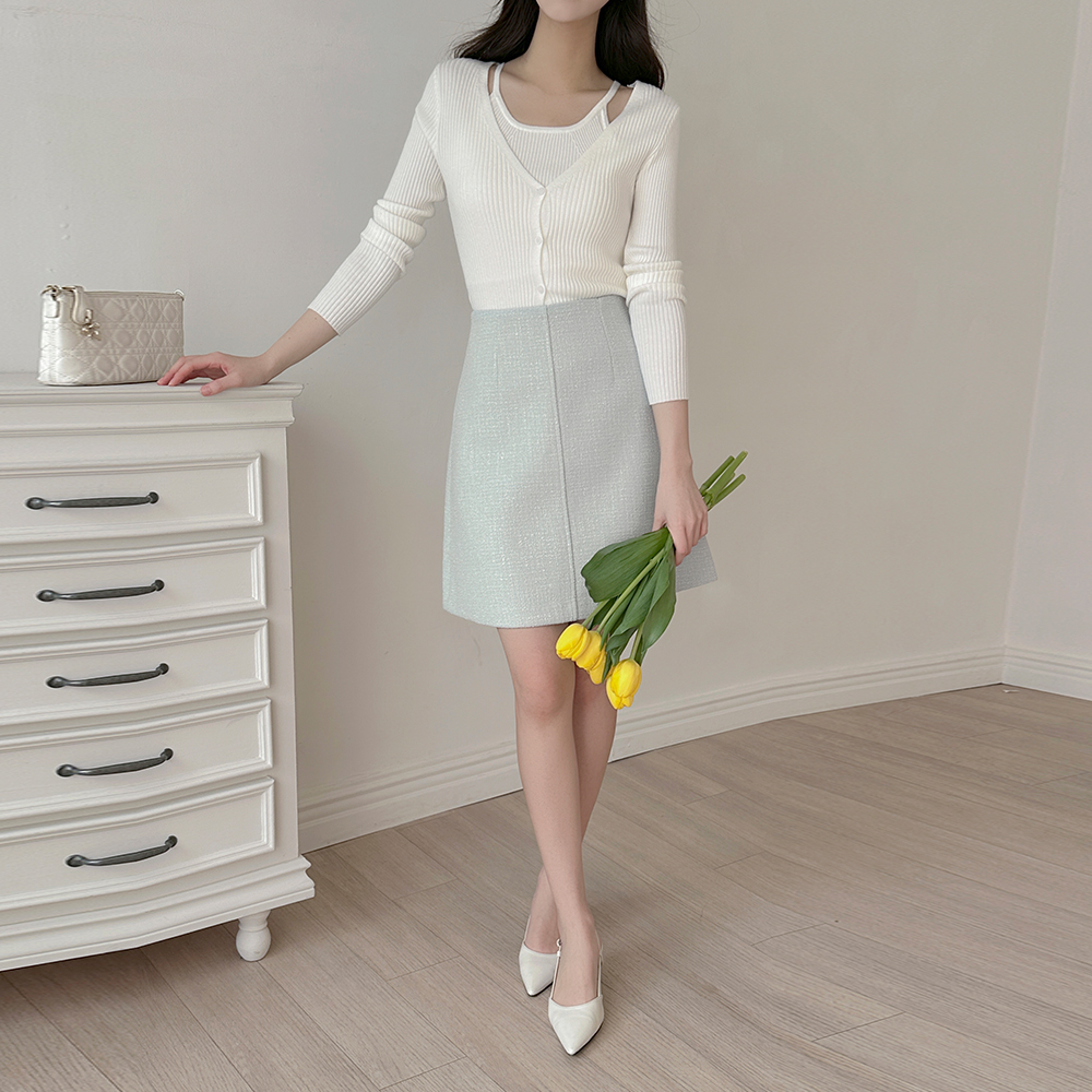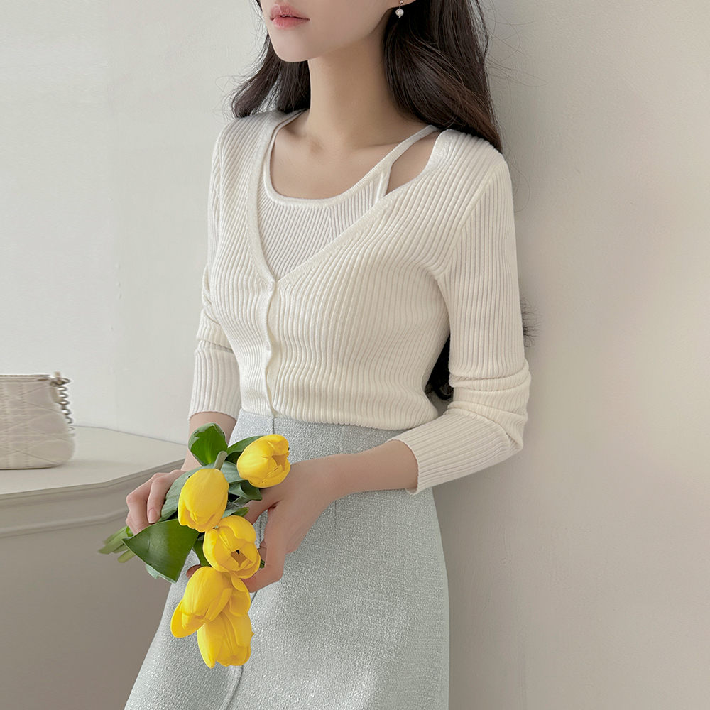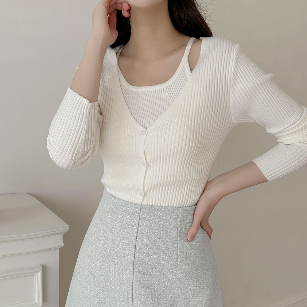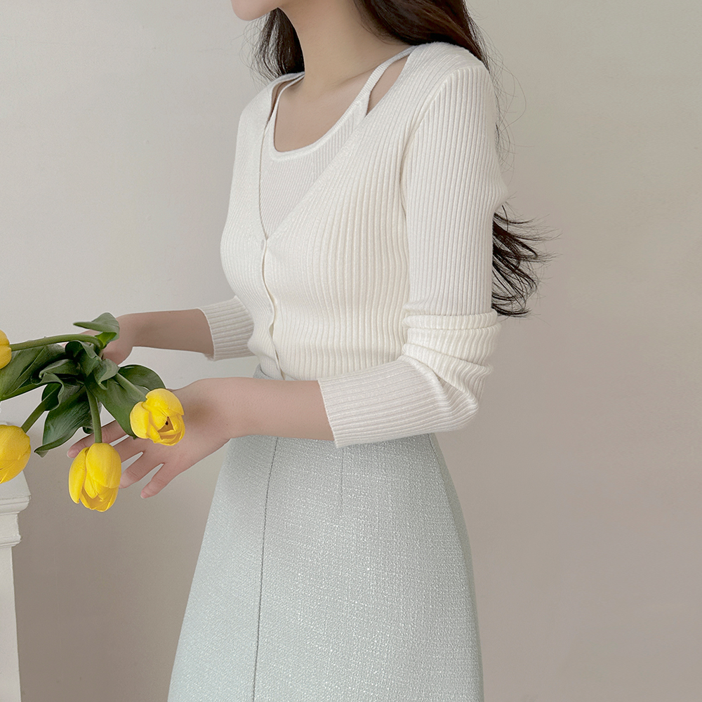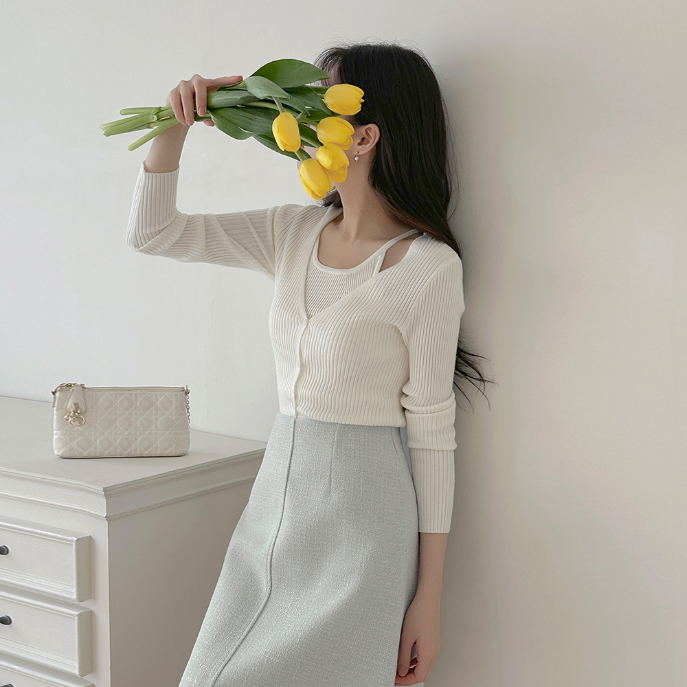 コール天 ニット ホールター 袖なし&カーディガン SET