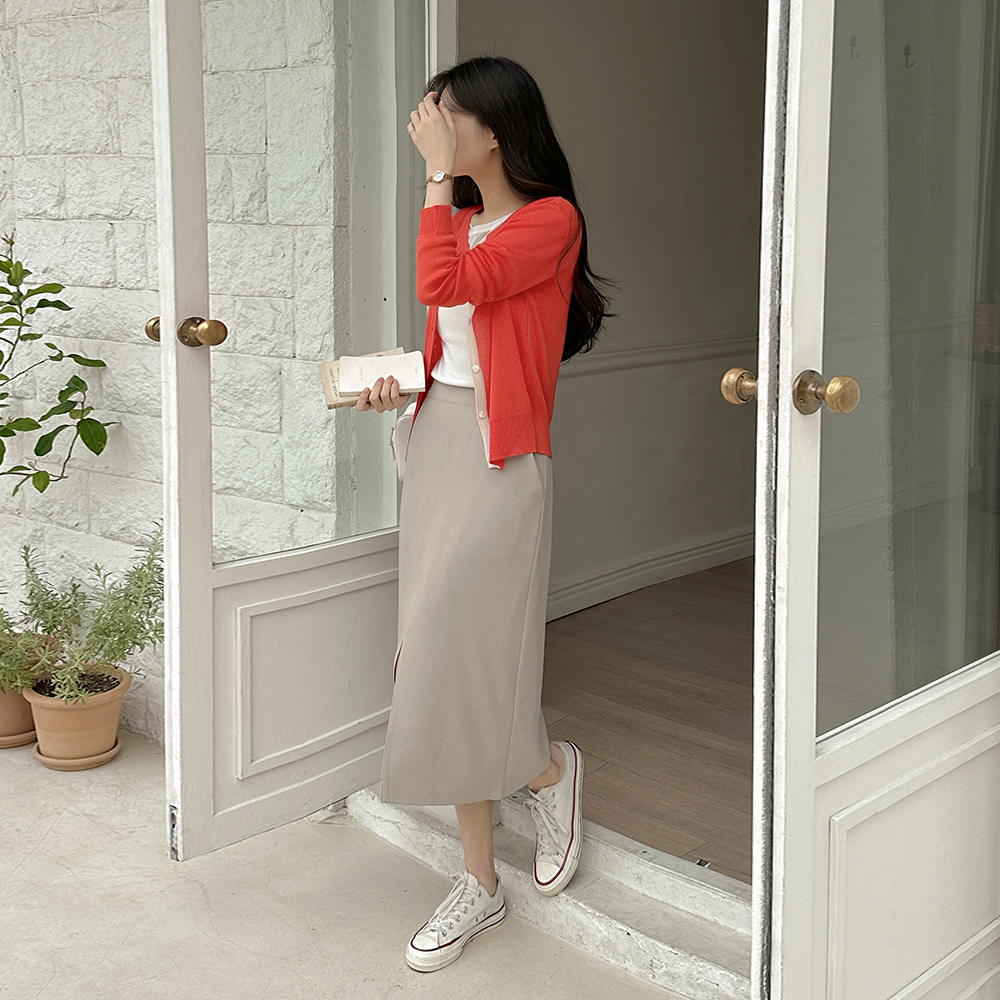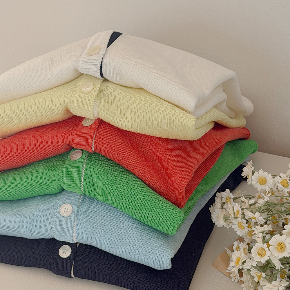 ラウンドネック 配色 カラー ニット カーディガン
